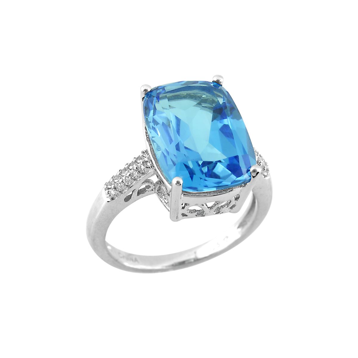 SS SWISS BLUE TOPAZ / WHITE TOPAZ RING - Size 7 (#9531SWWT) TOTAL CT WEIGHT 7.35