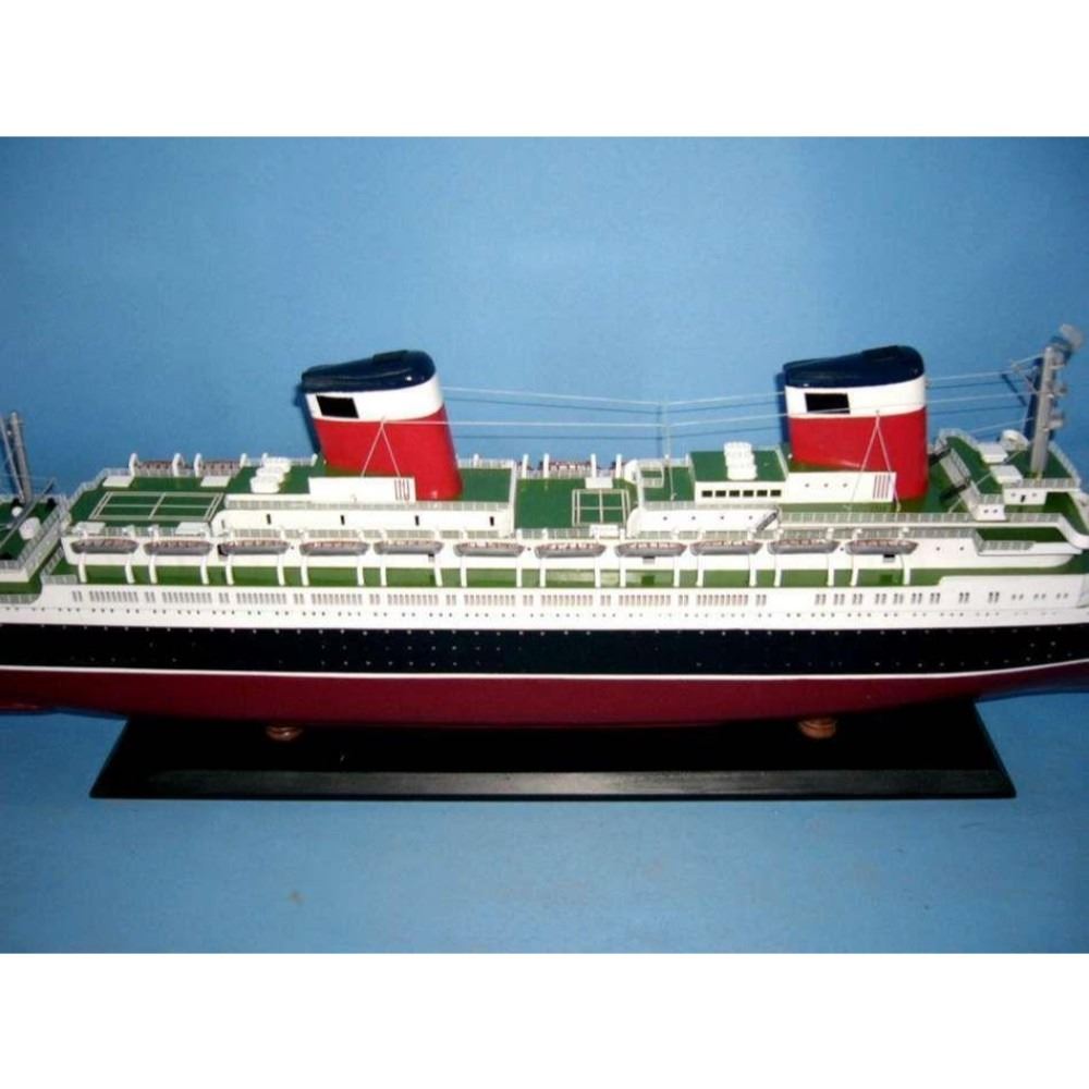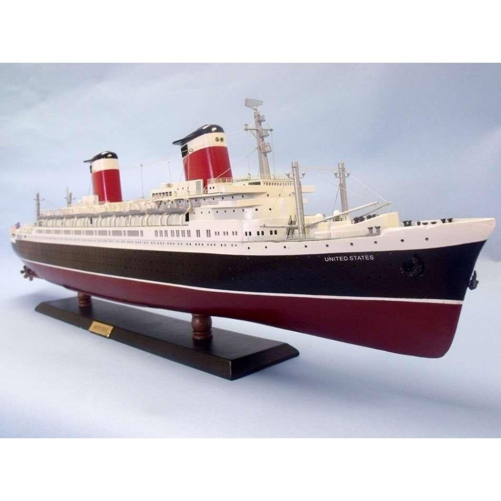 SS United States Limited Model Cruise Ship 40" w/ LED Lights SOLD FULLY ASSEMBLED Ready for Immediate Display - Not a Model Ship kit Built with museum-quality craftsmanship and fine attention to detail, these exquisite SS United States replica cruise ships truly evoke the heyday of grand ocean liners. These Limited Edition scale replica SS United States cruise ship models will draw you back to a bygone era of elegance and grandeur as they shine like a beacon of luxury and opulence. Sold fully assembled - this is not an SS United States model ship kit LED lighting upgrade over our 40" SS United States Limited:  Bright LED lights line the entire inside of the hull and shine brightly Lifelike lighting when compared to the actual SS United States due to accurate window and porthole placements Plugs into any electrical outlet - Detachable electrical cord comes out of the back of the base Longevity and brightness (LED light typical usage time 10+ years) Museum Quality features not available in other models or any kit Paint colors precisely matched to those of the SS United States All windows and portholes exactly sized and positioned according to the original construction plans Historical design and detailing of superstructure and hull Open promenade decks visible through superstructure windows Precise superstructure design and detailing Quadruple propeller design and accurate anchors Lattice grating on ducts and vents Finely-crafted wire maintenance ladders ascend smokestacks Built from scratch by our master artisans Built from highest quality woods including cherry, birch, maple, and rosewood Meticulous painting to accurately match the actual SS United States Only a limited amount of models will ever be produced due to the extensive hours required to make construct the model Extensive research of original plans, historical drawings, and paintings, as well as actual photographs, ensures the highest possible accuracy