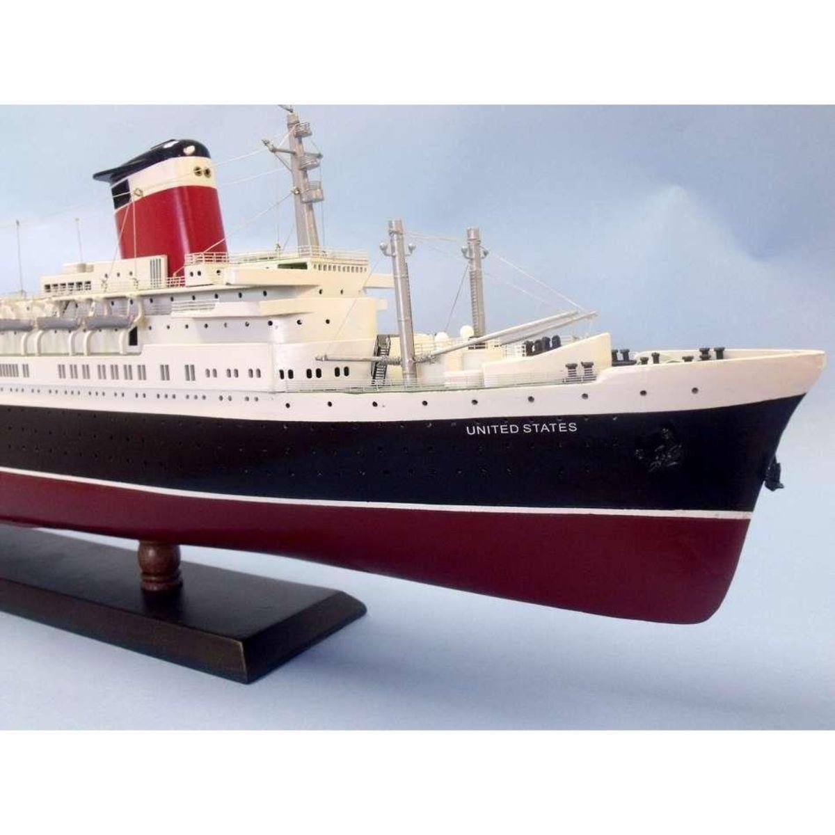 SS United States Limited Model Cruise Ship 40" w/ LED Lights SOLD FULLY ASSEMBLED Ready for Immediate Display - Not a Model Ship kit Built with museum-quality craftsmanship and fine attention to detail, these exquisite SS United States replica cruise ships truly evoke the heyday of grand ocean liners. These Limited Edition scale replica SS United States cruise ship models will draw you back to a bygone era of elegance and grandeur as they shine like a beacon of luxury and opulence. Sold fully assembled - this is not an SS United States model ship kit LED lighting upgrade over our 40" SS United States Limited:  Bright LED lights line the entire inside of the hull and shine brightly Lifelike lighting when compared to the actual SS United States due to accurate window and porthole placements Plugs into any electrical outlet - Detachable electrical cord comes out of the back of the base Longevity and brightness (LED light typical usage time 10+ years) Museum Quality features not available in other models or any kit Paint colors precisely matched to those of the SS United States All windows and portholes exactly sized and positioned according to the original construction plans Historical design and detailing of superstructure and hull Open promenade decks visible through superstructure windows Precise superstructure design and detailing Quadruple propeller design and accurate anchors Lattice grating on ducts and vents Finely-crafted wire maintenance ladders ascend smokestacks Built from scratch by our master artisans Built from highest quality woods including cherry, birch, maple, and rosewood Meticulous painting to accurately match the actual SS United States Only a limited amount of models will ever be produced due to the extensive hours required to make construct the model Extensive research of original plans, historical drawings, and paintings, as well as actual photographs, ensures the highest possible accuracy