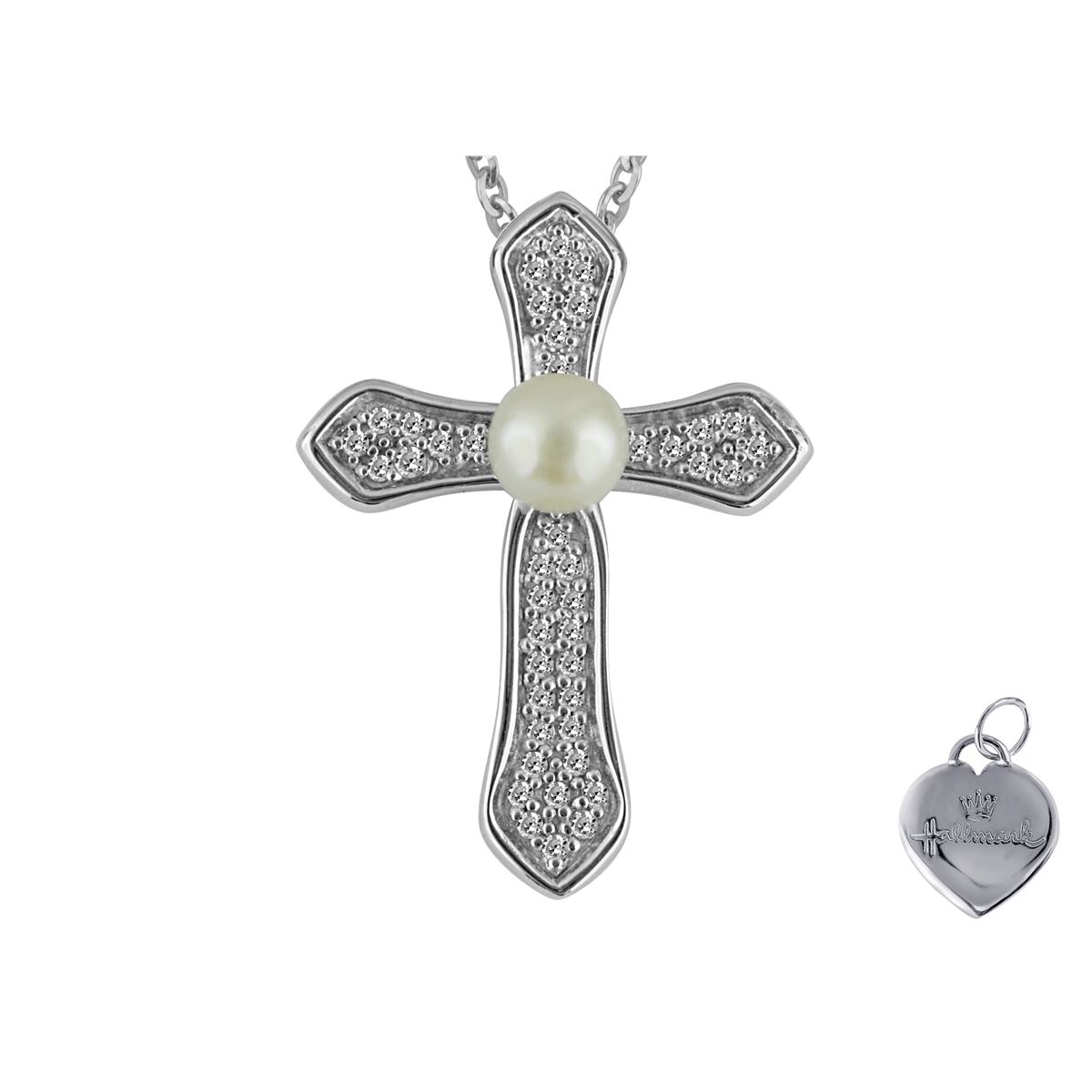 SS WHITE PEARL / DIAMOND CROSS PENDANT (#8234PRL) TOTAL CT WEIGHT 0.0001