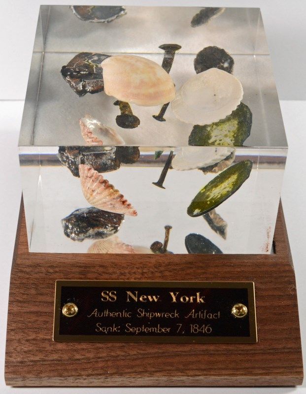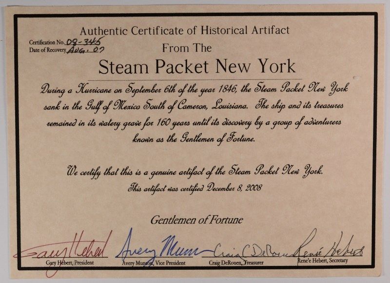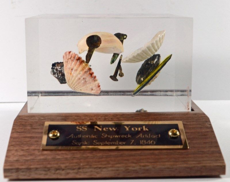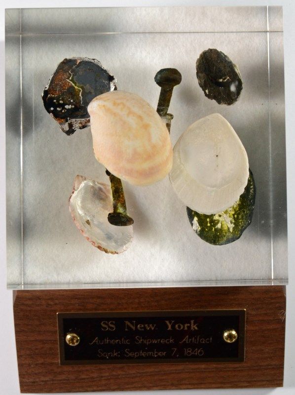 COMES WITH WRITTEN HISTORY OF THE SSNY SHIPWRECK IN 1846, COA SIGNED BY THE PEOPLE WHO FOUND THE WRECK! GREAT GIFT IDEA!!! ESTIMATE, $1000.00 TO $1100.00
