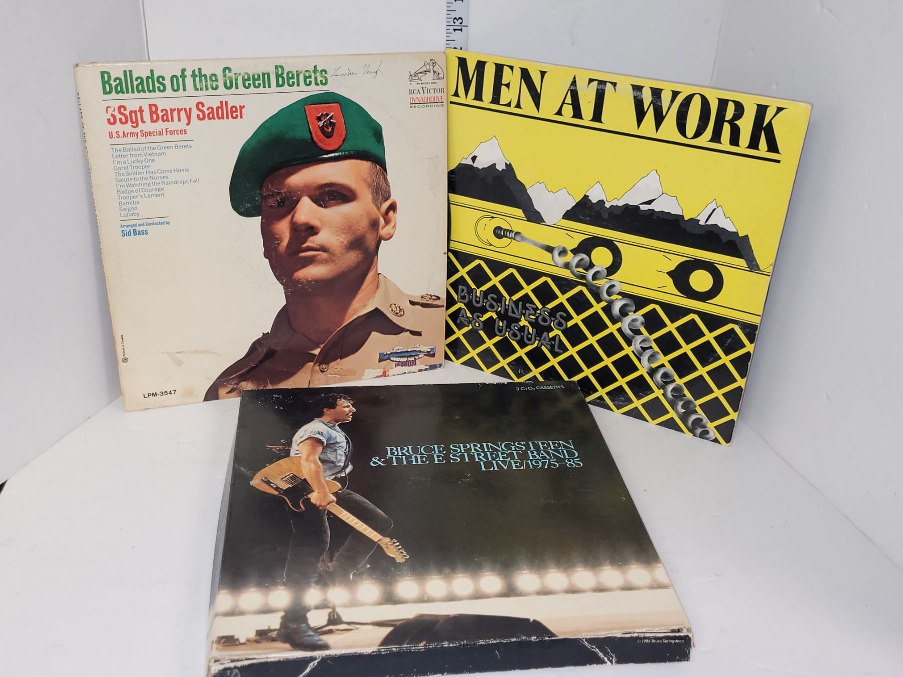 SSgt Barry Sadler, Ballads of the Green Berets & Men At Work, Business As Usual & Bruce Springsteen & The Street Band, Live 1975-85 Cassette Set, Vinyl LP Records