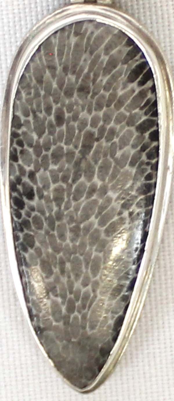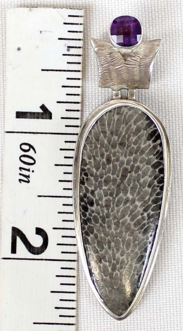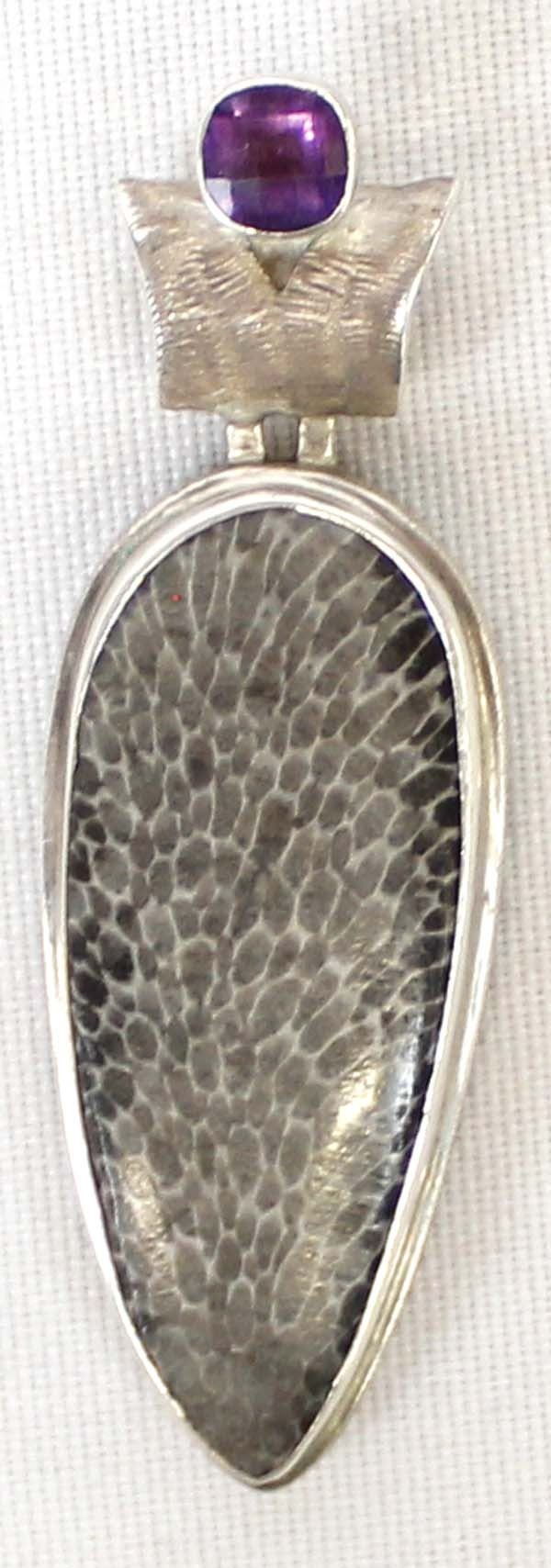 Unusual Sterling Silver Pendant Alligator Jasper & Amethyst. Measures 2 1/2'' Long x 1/2'' Wide.