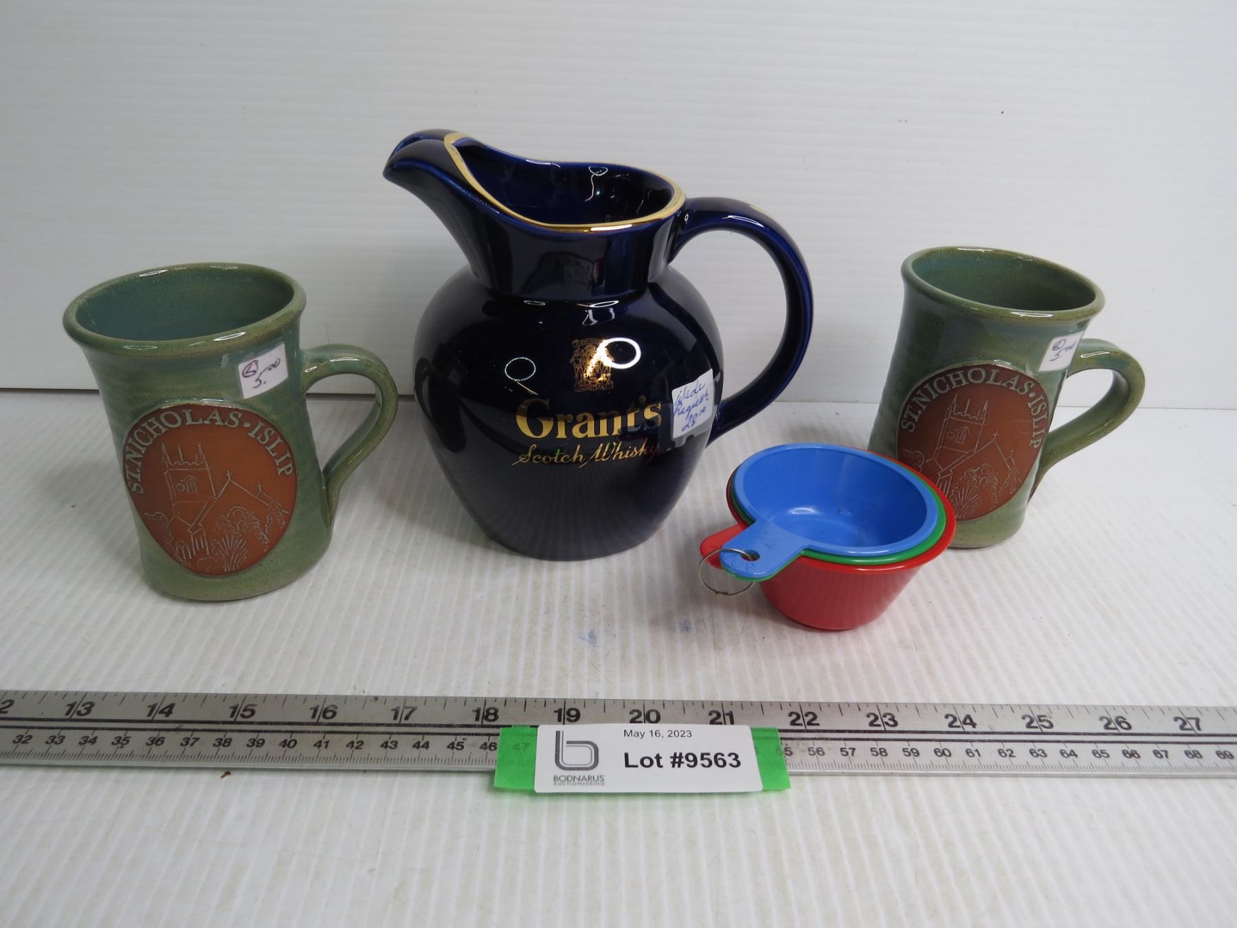 ST. Nicholas Islip Cups - Wade Grants Scotch Whiskey Pitcher - Plastic Measuring Cups