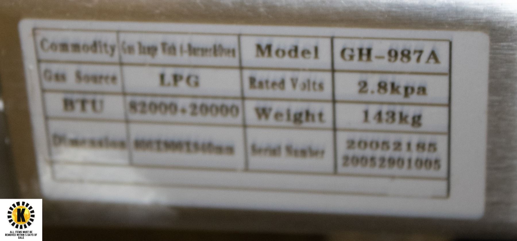 -All items need to be picked up within 5 days of purchase.