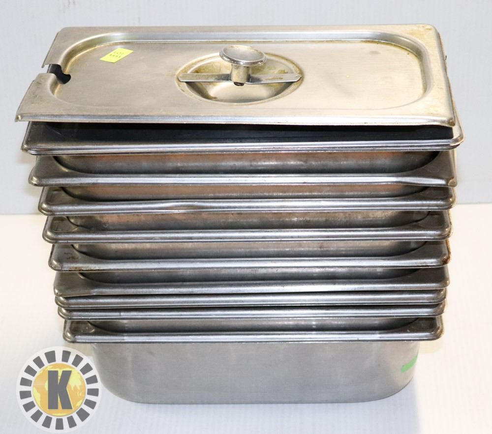STACK OF 1/4 SIZE STAINLESS STEEL RESTAURANT