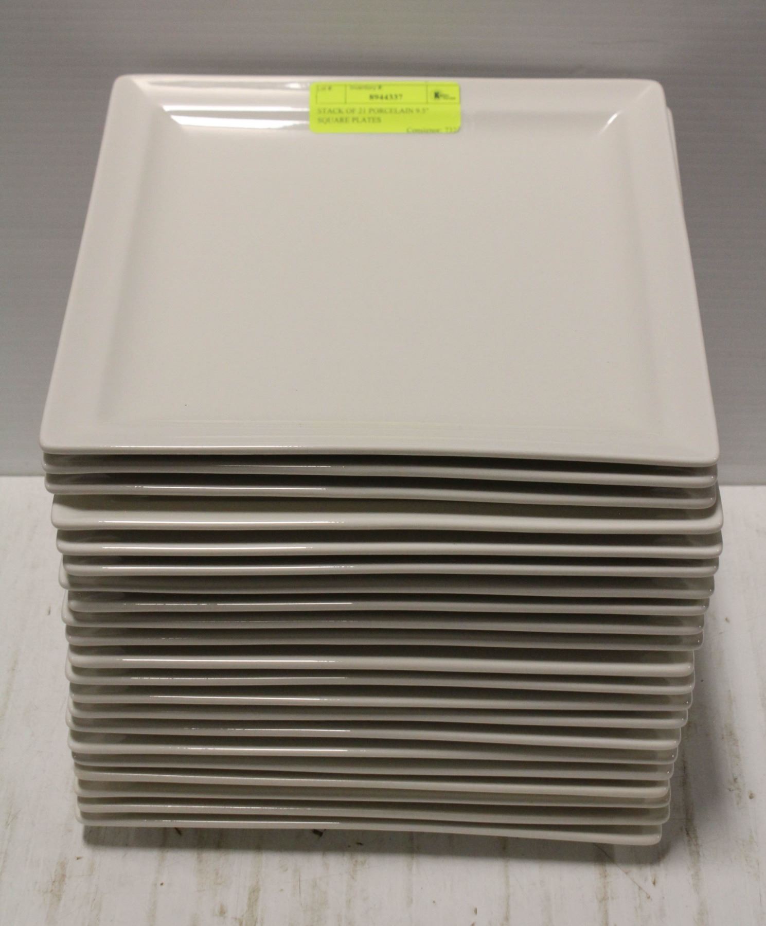 STACK OF 21 PORCELAIN 9.5" SQUARE PLATES