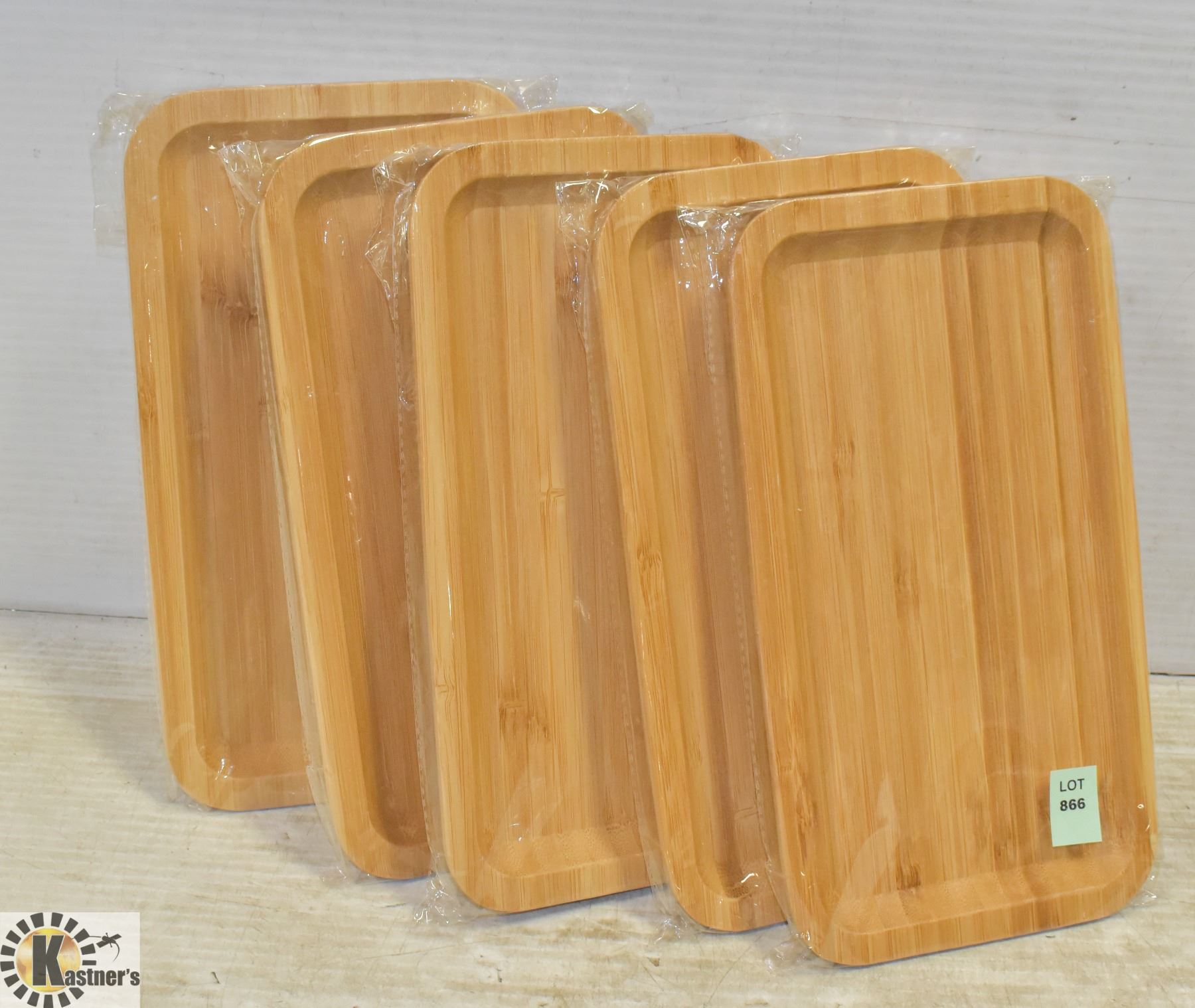 STACK OF 5 BAMBOO ROLLING TRAYS