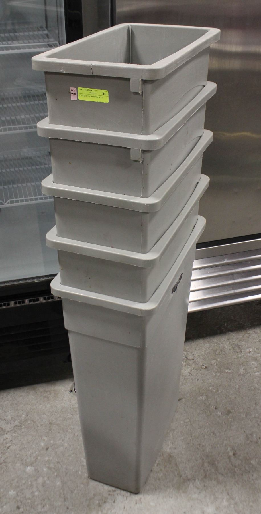 STACK OF 5 SLIM TRASH BINS