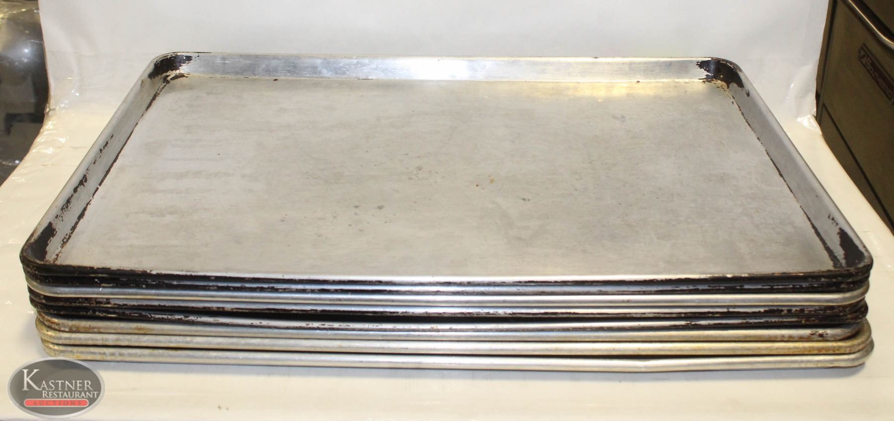 STACK OF 8 FULL SIZE ALUMINUM BUN PANS
