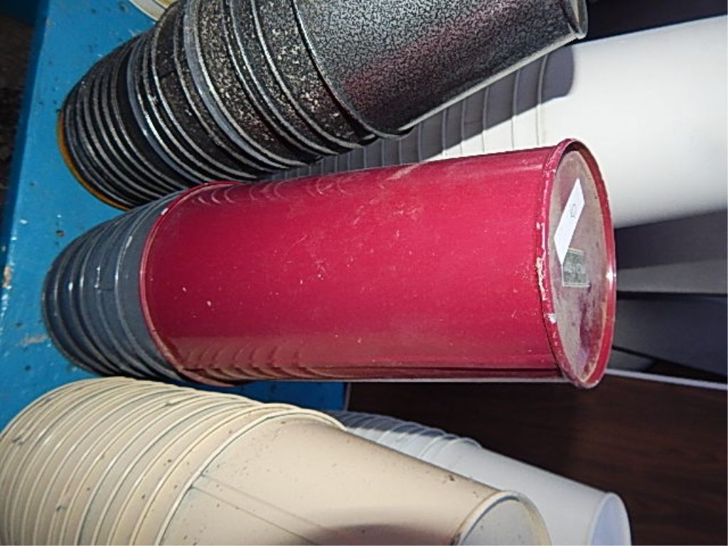STACK OF METAL PLANT POTS - RED