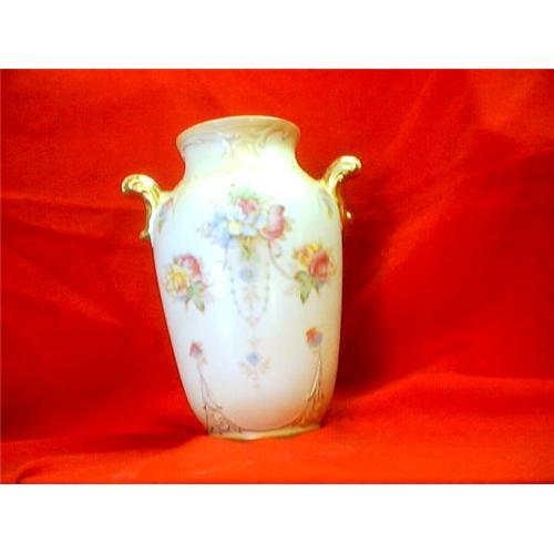 VERY HANDSOME IVORY COLOR STAFFORDSHIRE PORCELAIN VASE WITH HAND PAINTED FLOWER AND GOLD DECORATION AND GOLD HANDLES.(19th CT ENGLAND)THERE IS IMPRESSED #86 AND PRINTED BROWN MARK AND #RONO635593.AND PRINTED #0938 IN BLACK AND LETTER (T).SOME GILDING WORN OFF ON THE HANDIE THAT IS BEACUSE OF THE AGE OTHERWISE IT IS IN PERFECT CONDITION.