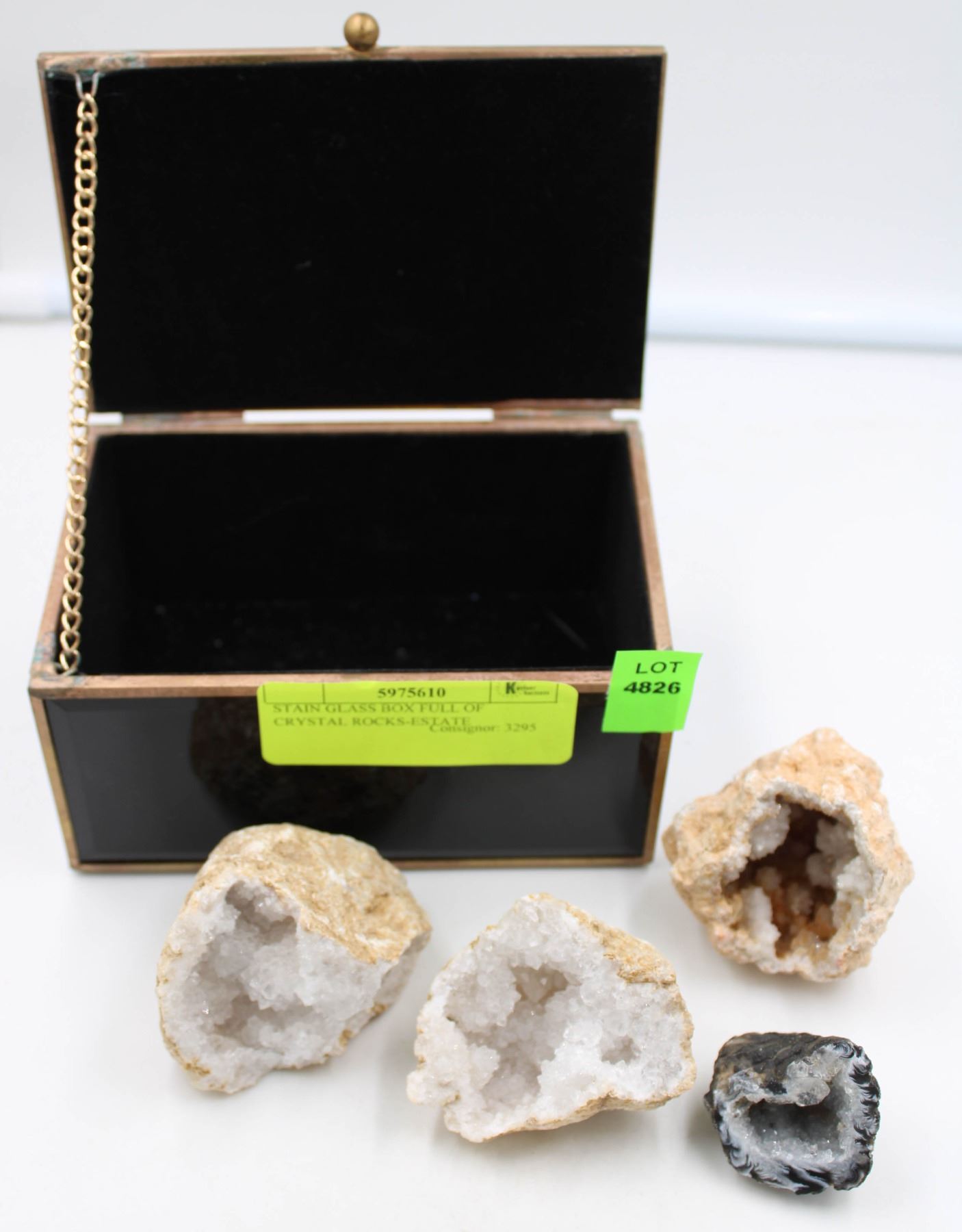 STAIN GLASS BOX FULL OF CRYSTAL ROCKS-ESTATE