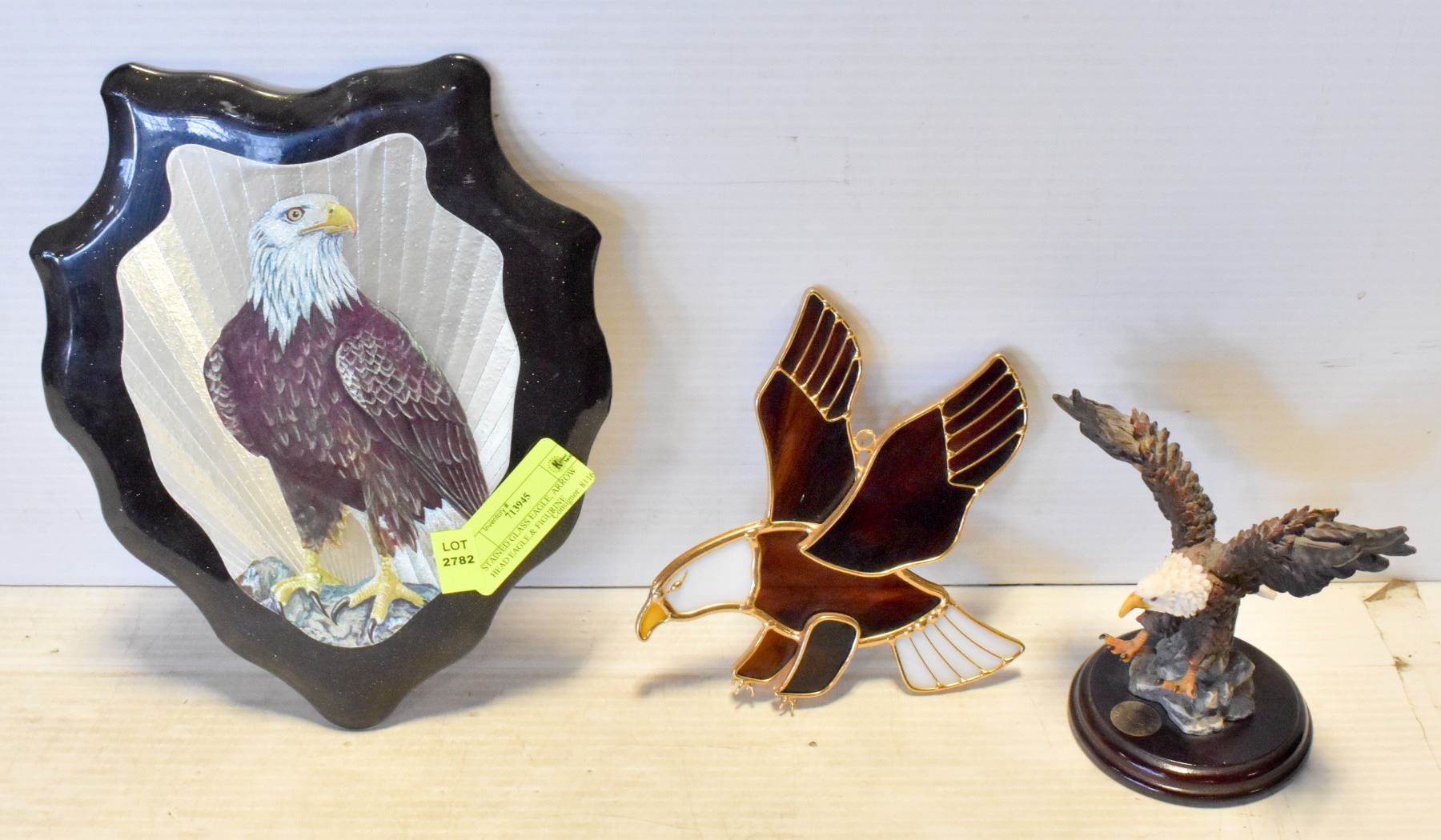 STAINED GLASS EAGLE, ARROW HEAD EAGLE,& FIGURINE
