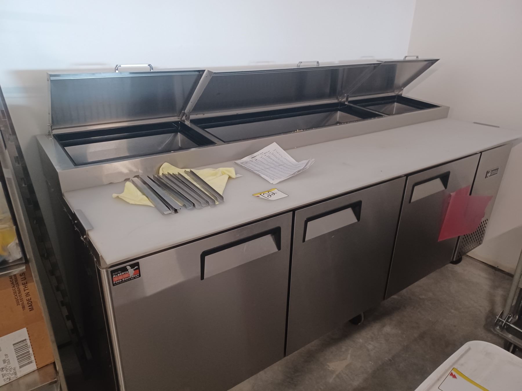STAINLESS STEEL 3-FT. x 93" x 37" COUNTERTOP COOLER/PREP-PIZZA TABLE. EFI.