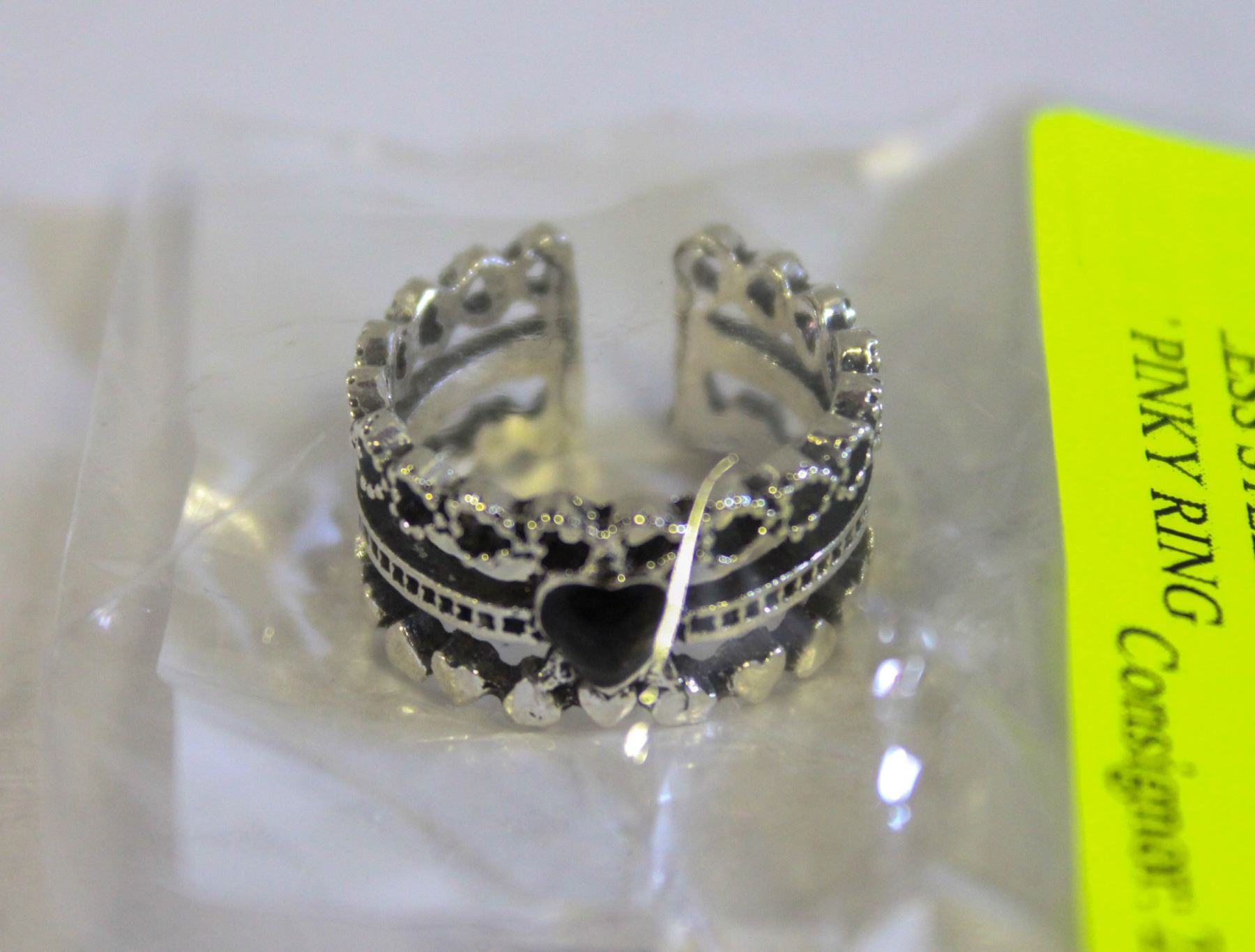 STAINLESS STEEL DEVIL BAT BLACK HEART PINKY RING