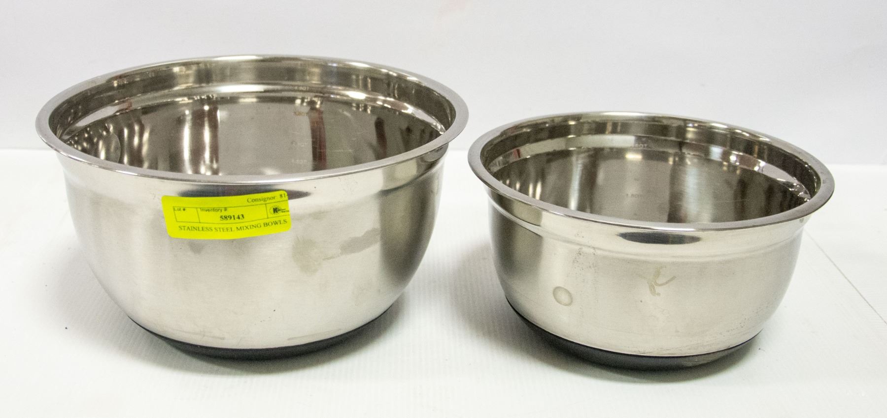 4.8 QT AND 2.5 QT MIXING BOWLS WITH RUBBER BOTTOMS.