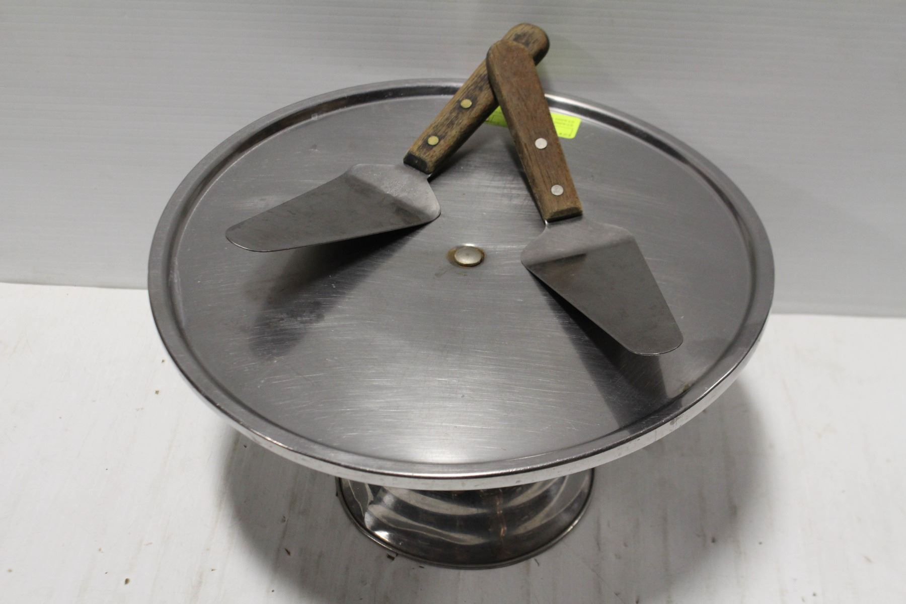STAINLESS STEEL PIZZA/DESSERT STAND W/ 2 SERVER
