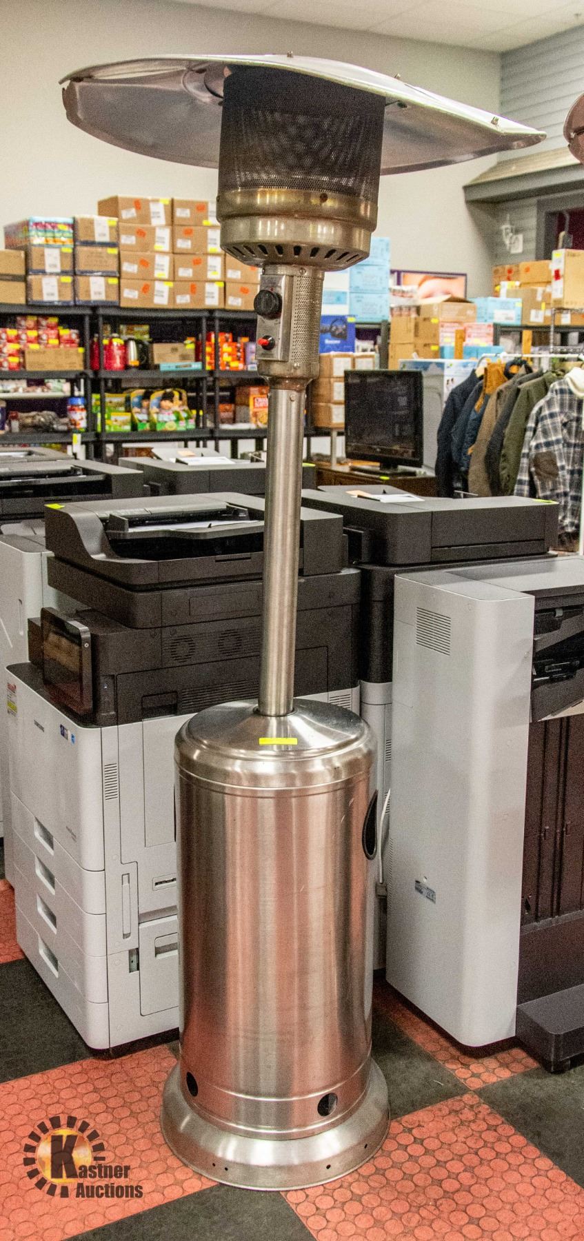 BTU'S, BASE STAND STORES PROPANE BOTTLE, WORKING PUSH BUTTON IGNITER, ADJUSTABLE TEMPERATURE CONTROL - 77"-TALL, 32"-DIAM. TOP CANOPY HEAT REFLECTOR **ALL ITEMS MUST BE REMOVED BY 5PM SATURDAY, JULY 1ST 2023. ALL REMAINING ITEMS WILL BE SUBJECT TO A $6.00 PER DAY STORAGE CHARGE. ANY ITEMS REMAINING AFTER MONDAY, JULY 17TH, 2023 WILL BE CONSIDERED FORFEITED. NO REFUNDS WILL BE ISSUED FOR FORFEITED ITEMS. TO SCHEDULE A PICK UP APPOINTMENT CLICK HERE