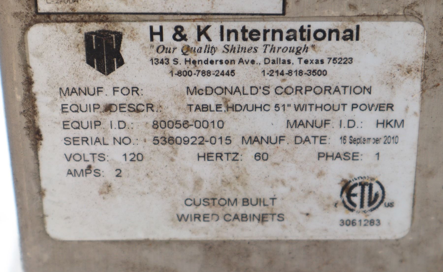 APPROX 54" X 38" MAIN TOP WORK SERVICE, MAX HEIGHT APPROX 41"