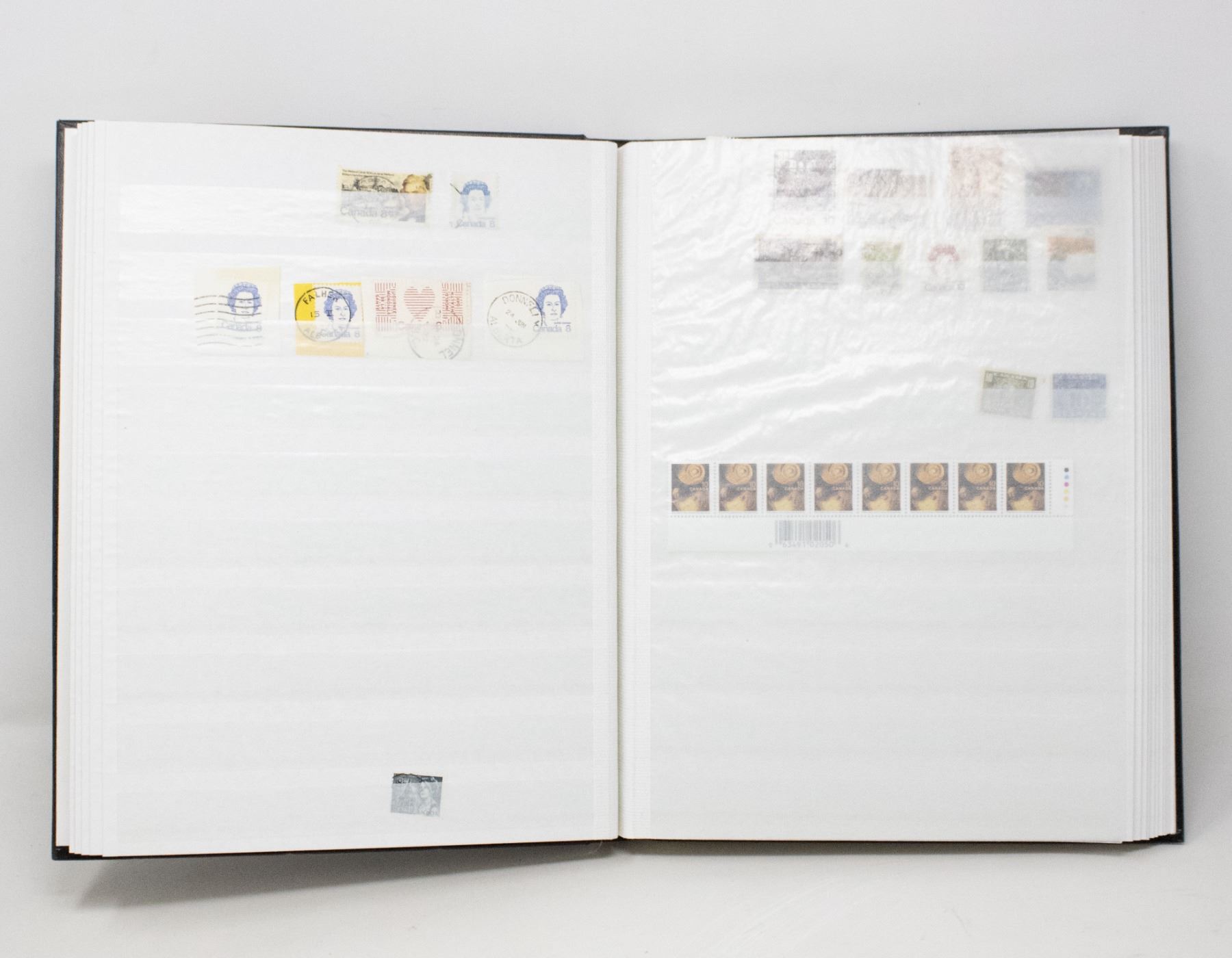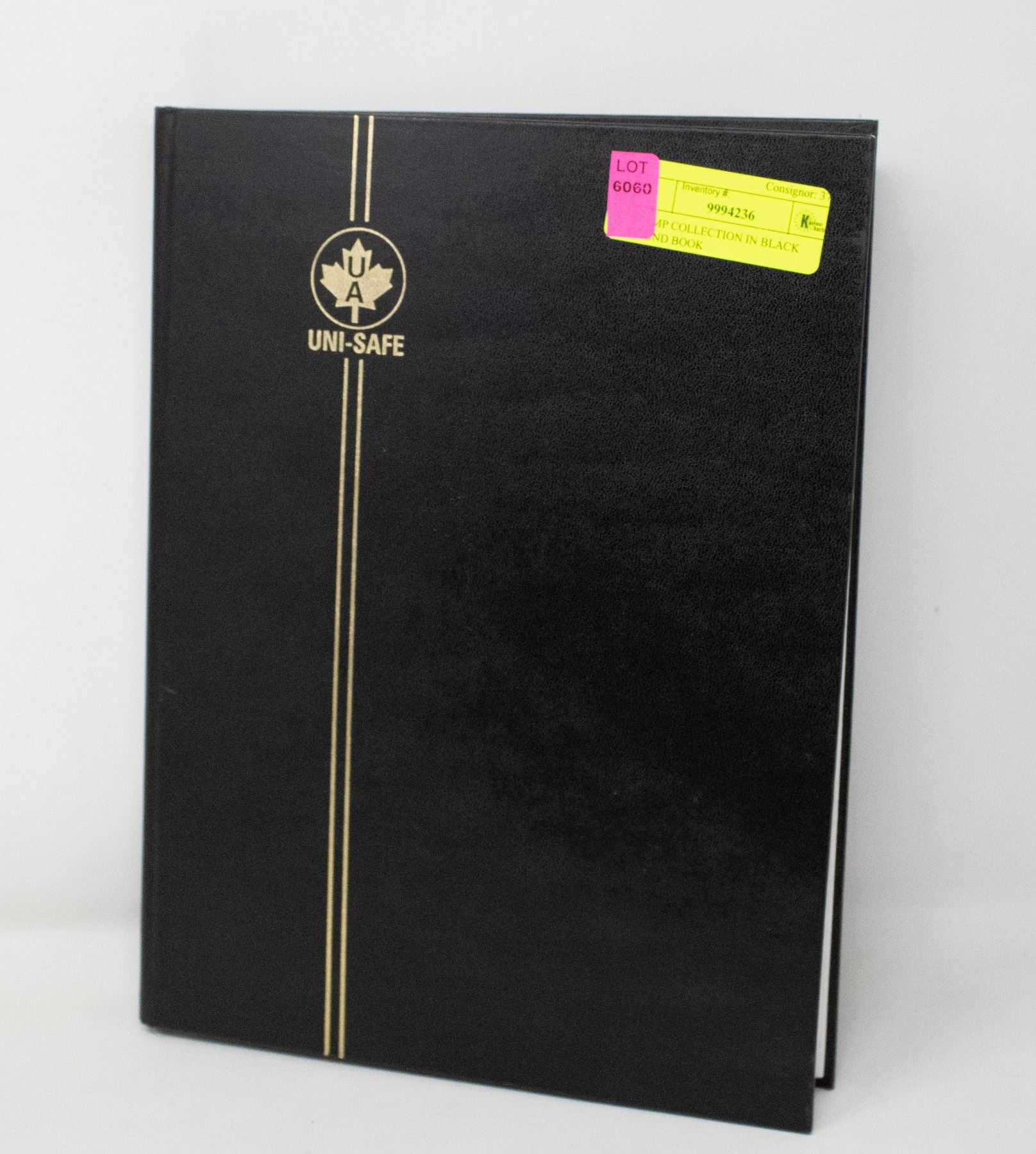 STAMP COLLECTION IN BLACK BOUND BOOK