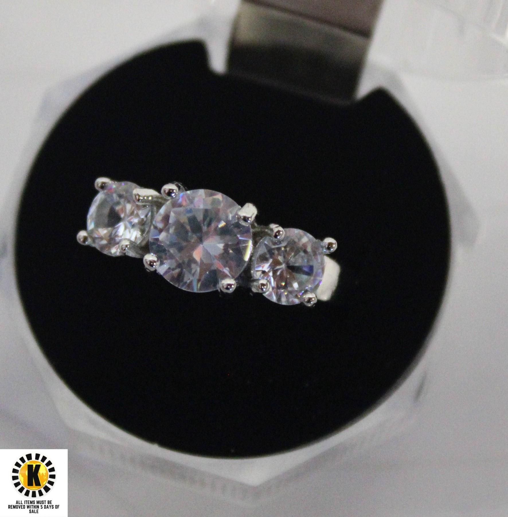 WITH 2.00 CT CENTER CZ AND 0.85 ON EITHER SIDE WITH CLEAR ACCENTS SIZE 8.5ÿ