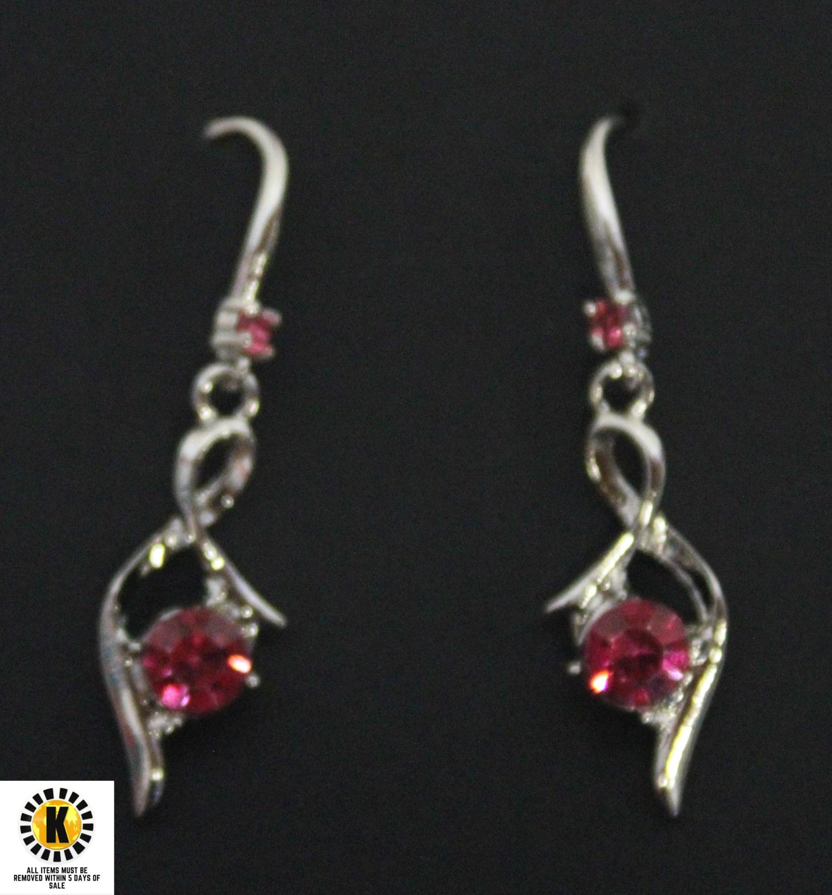 STAMPED 925 DANGLING EARRINGS WITH PINK STONESÿ