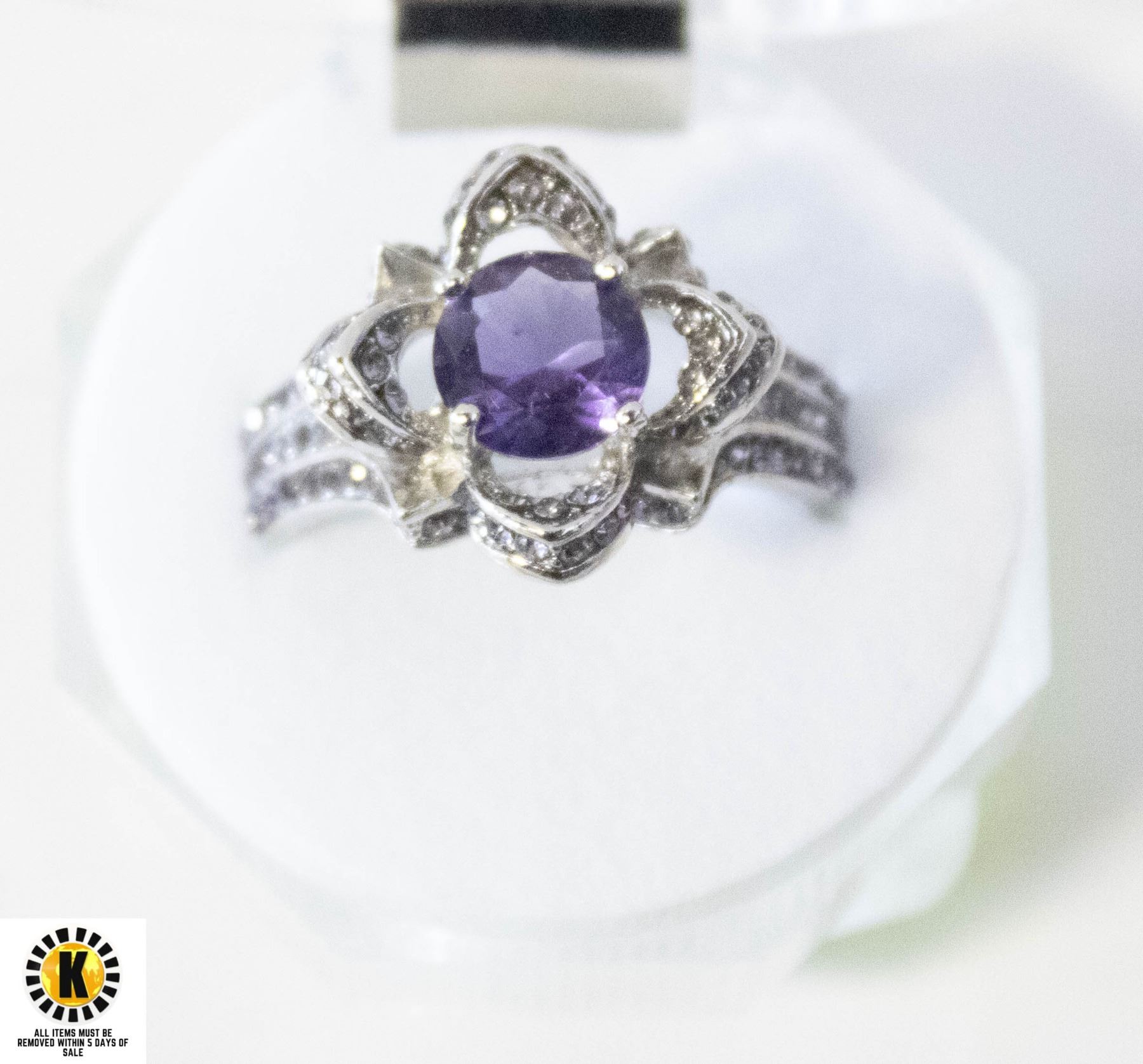 CENTER PURPLE CZ WITH CLEAR ACCENTS IN SHANK SIZE 10