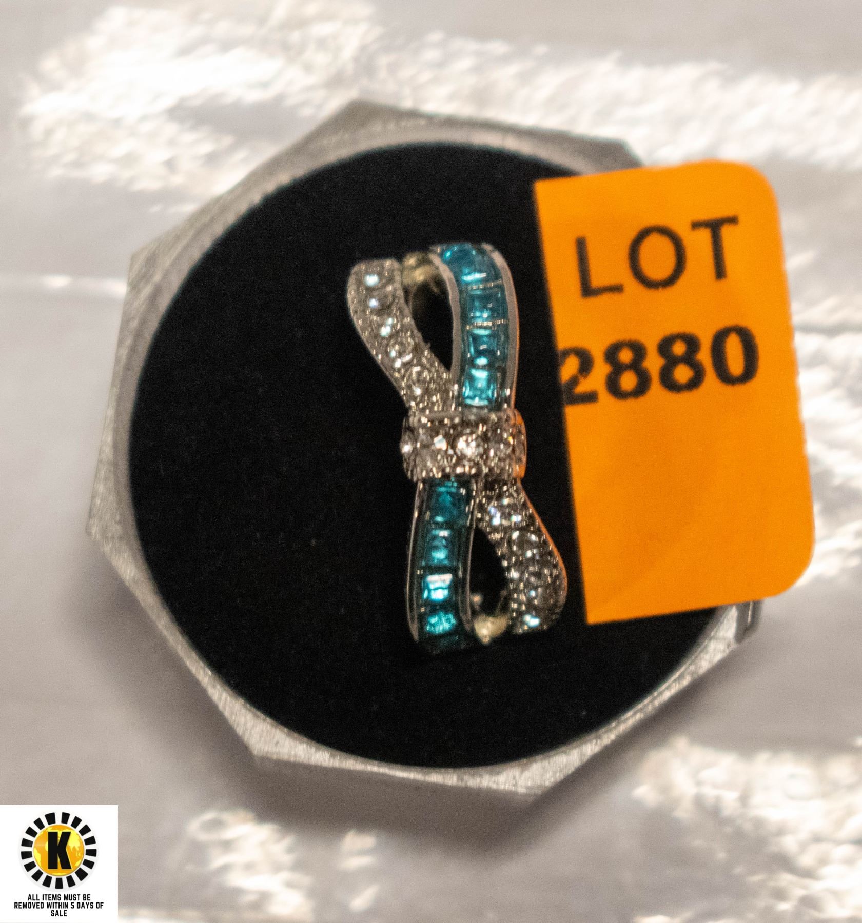 PRINCESS CUT CHANNEL SET STONES AND CLEAR ACCENTS SIZE 8.5 - BROKEN RING BOX