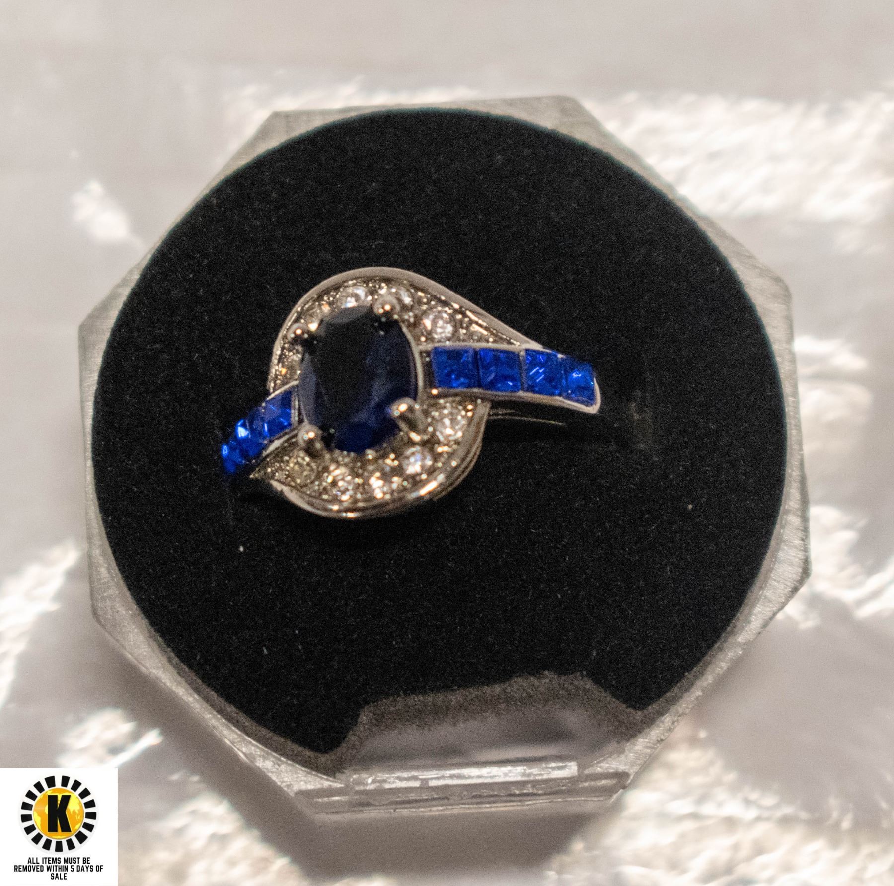 CENTER WITH CHANNEL SET PRINCESS CUTS AND CLEAR ACCENTS SIZE 8- BROKEN RING BOX