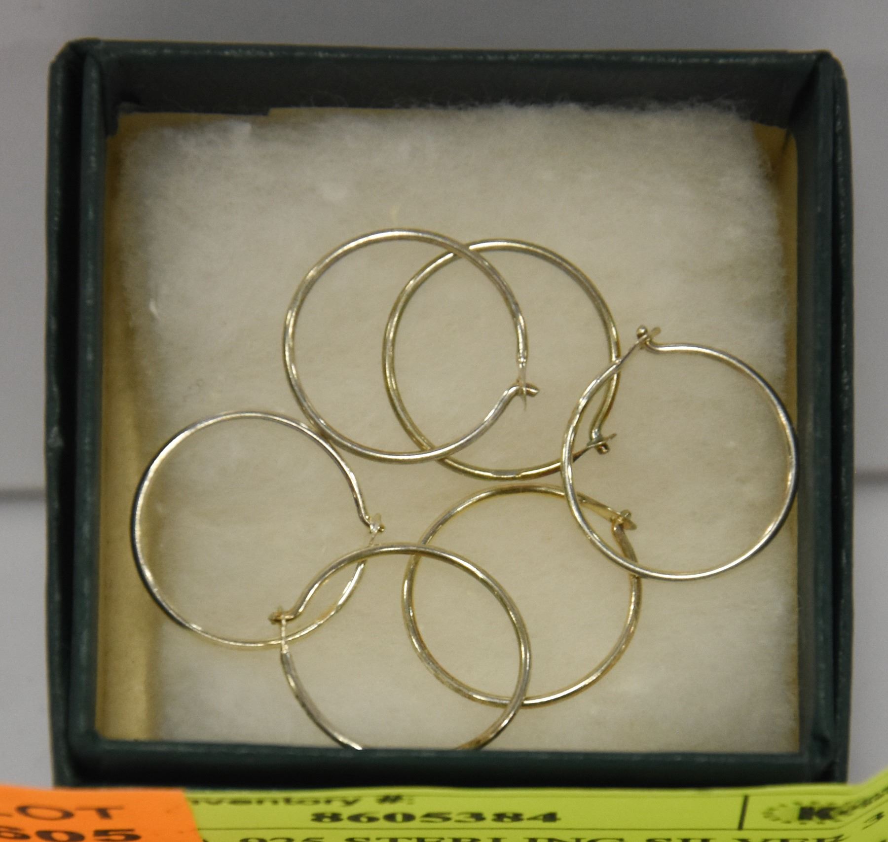 STAMPED .925 STERLING SILVER 3 PAIR HOOP EARRINGS