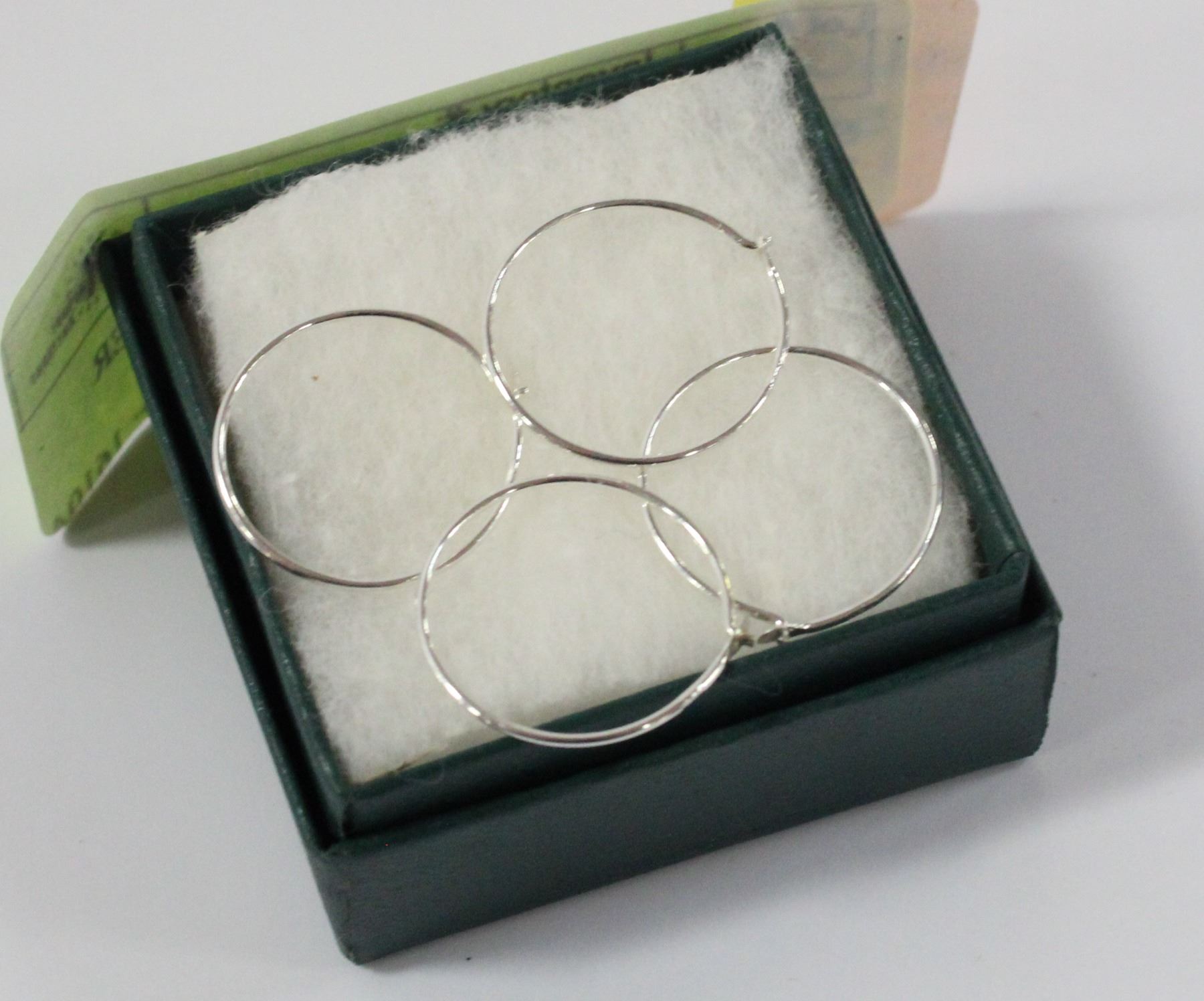 STAMPED .925 STERLING SILVER TWO PAIR HOOP EARRING