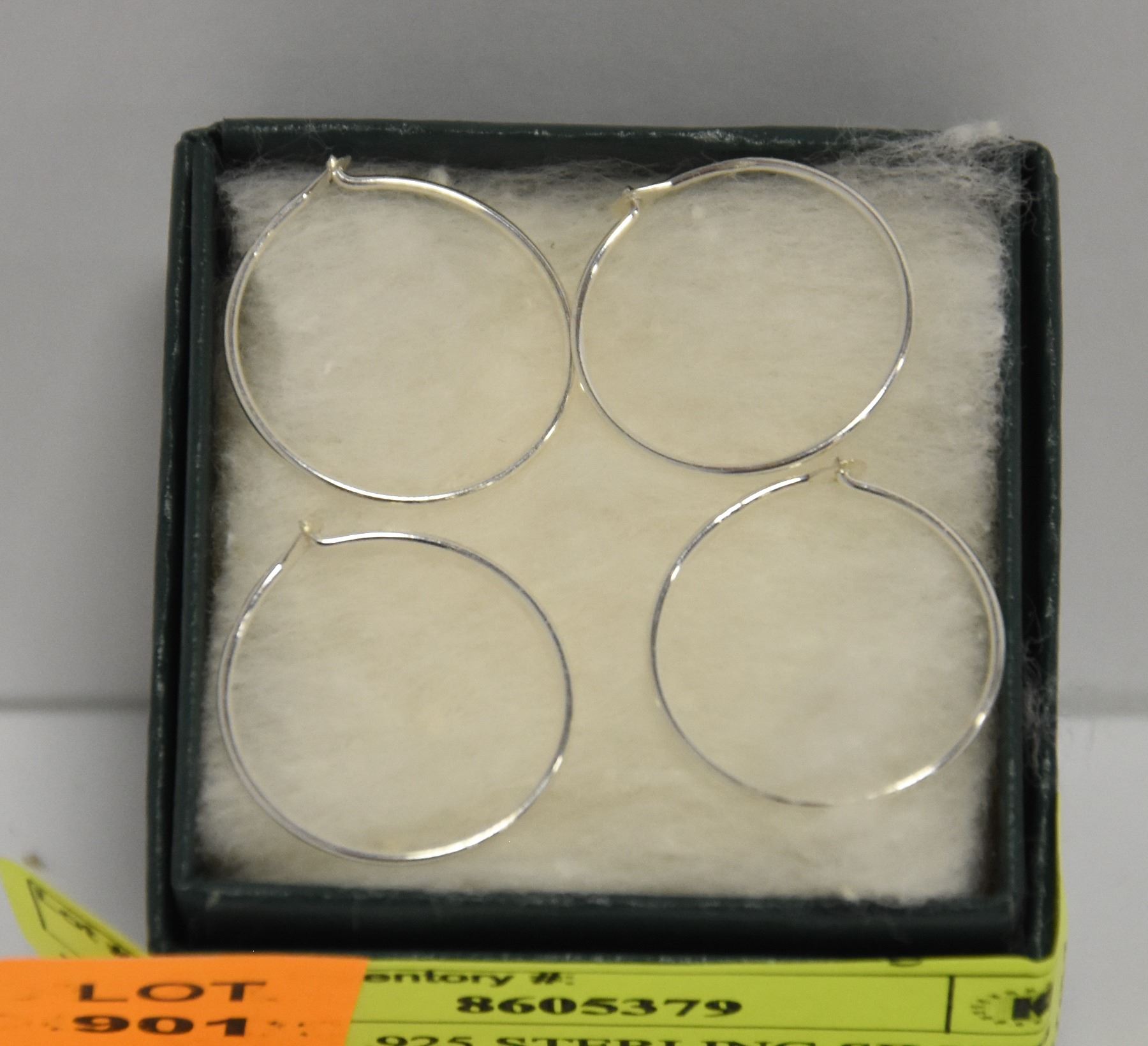 STAMPED .925 STERLING SILVER TWO PAIR HOOP EARRING