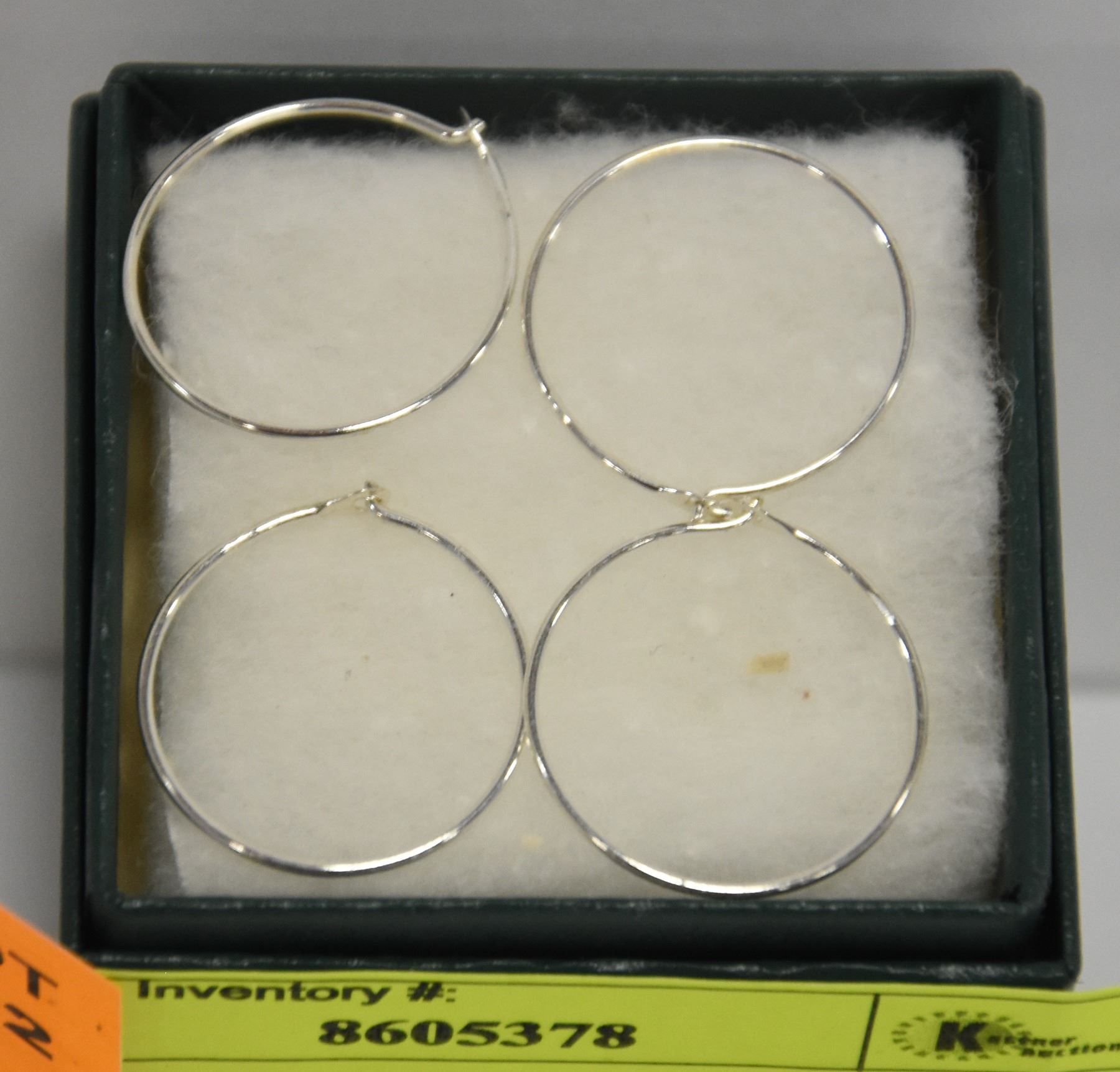 STAMPED .925 STERLING SILVER TWO PAIR HOOP EARRING