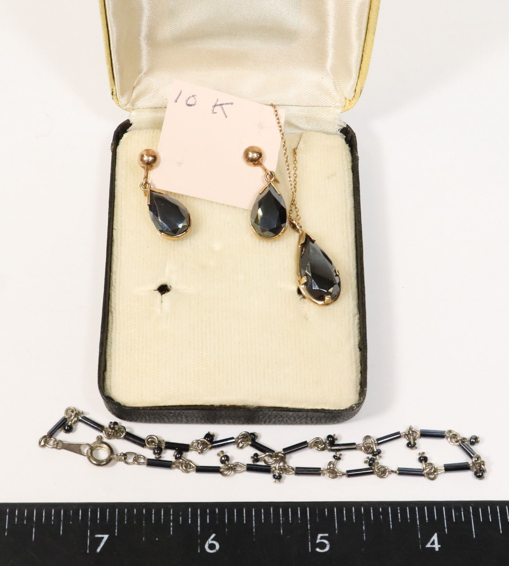 WITH STAMPED 10K GOLD SCREW BACK EARRINGS AND BLUE SILVER TONE BRACELET