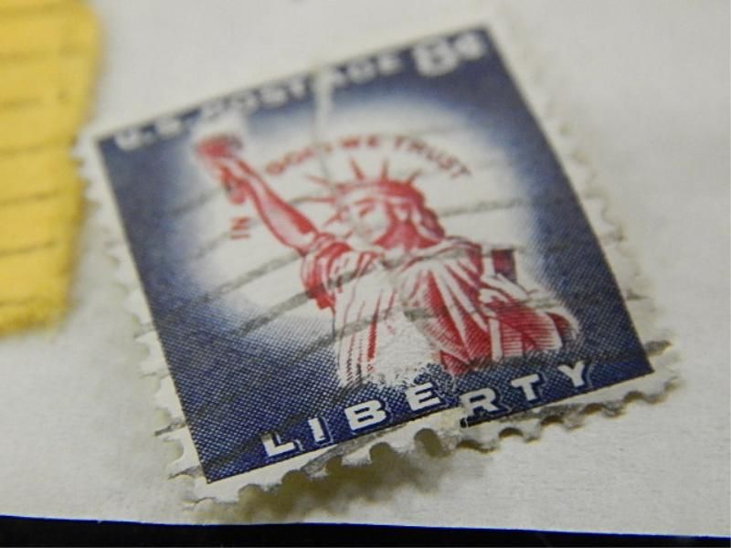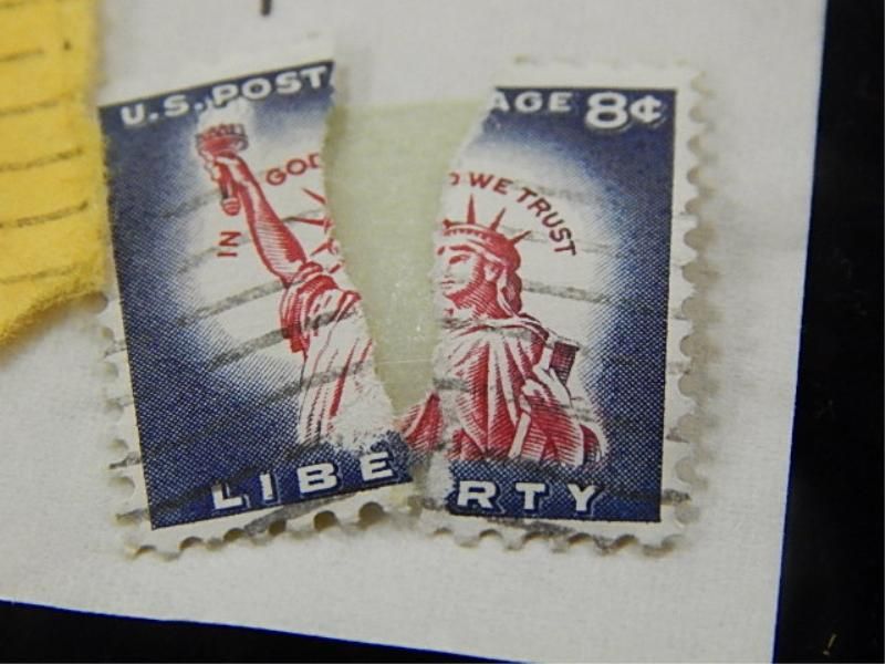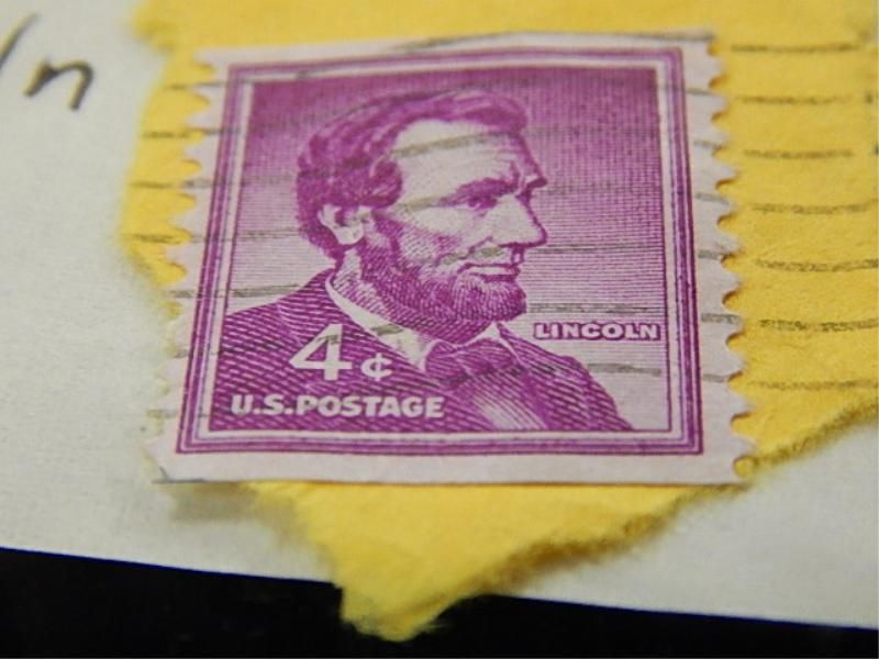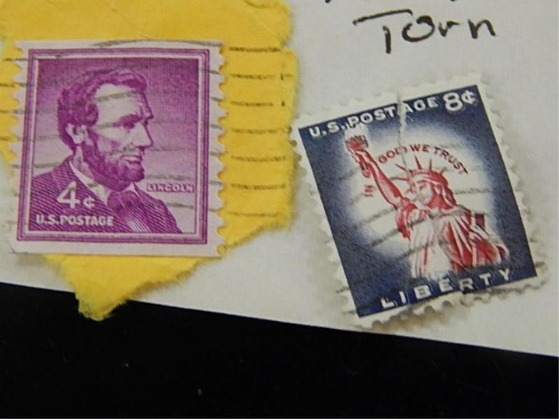 STAMPS - 1954 4c LINCOLN AND 1954 LIBERTY (TORN) = 2 TOTAL