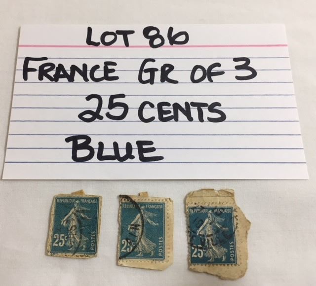FRANCE, GR OF 3, 25 CENTS BLUE