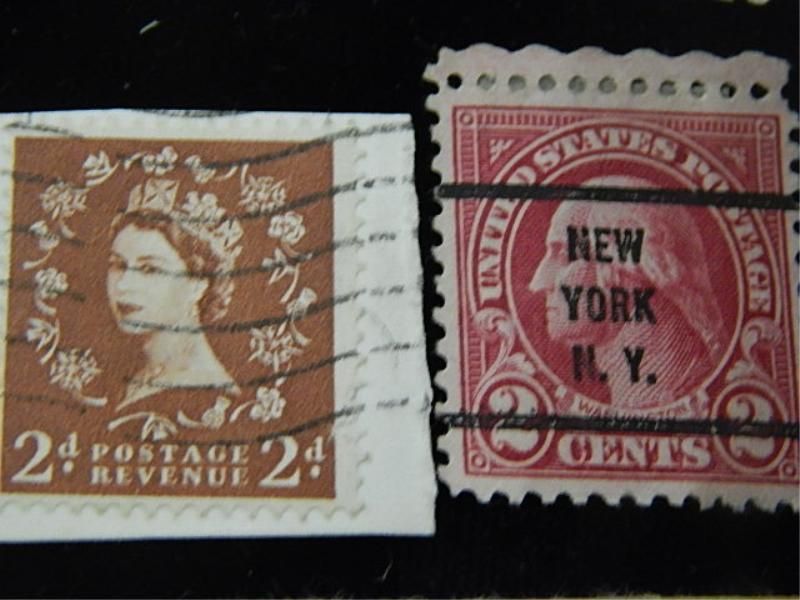 STAMPS - NEDERLAND (1) AND GB (1) AND US (3) = 5 PC TOTAL