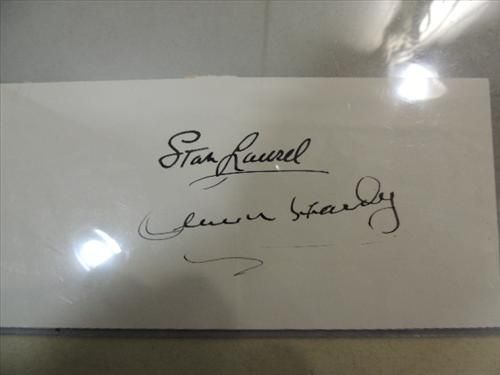 STAN LAUREL & OLIVER HARDY CUT SIGNATURE AUTOGRAPH NO COA. AS SHOWN. VIEW PICTURE FOR DETAIL. PLEASE BE ADVISED, AND INFORMED REGARDING SIGNATURES OR AUTOGRAPHS THAT WE SELL AT AUCTION: WE ARE NOT AUTHENTICATORS, AND WE DO NOT AUTHENTICATE, OR VALIDATE ANY AUTOGRAPHS OR SIGNATURES THAT WE OFFER AT AUCTION. SOME AUTOGRAPHS OR SIGNATURES MAY COME WITH AN AUTHENTICATION FROM ANY ONE OF LITERALLY HUNDREDS OF AUTHENTICATORS ACROSS THE COUNTRY, AND AROUND THE WORLD. WE DO NOT ENDORSE ANY AUTHENTICATOR, NOR DO WE GUARANTEE THAT ANY AUTOGRAPH OR SIGNATURE IS AUTHENTIC, OR THAT IT WILL PASS AUTHENTICATION BY ANY AUTHENTICATOR. ALL AUTOGRAPHS OR SIGNATURES ARE SOLD