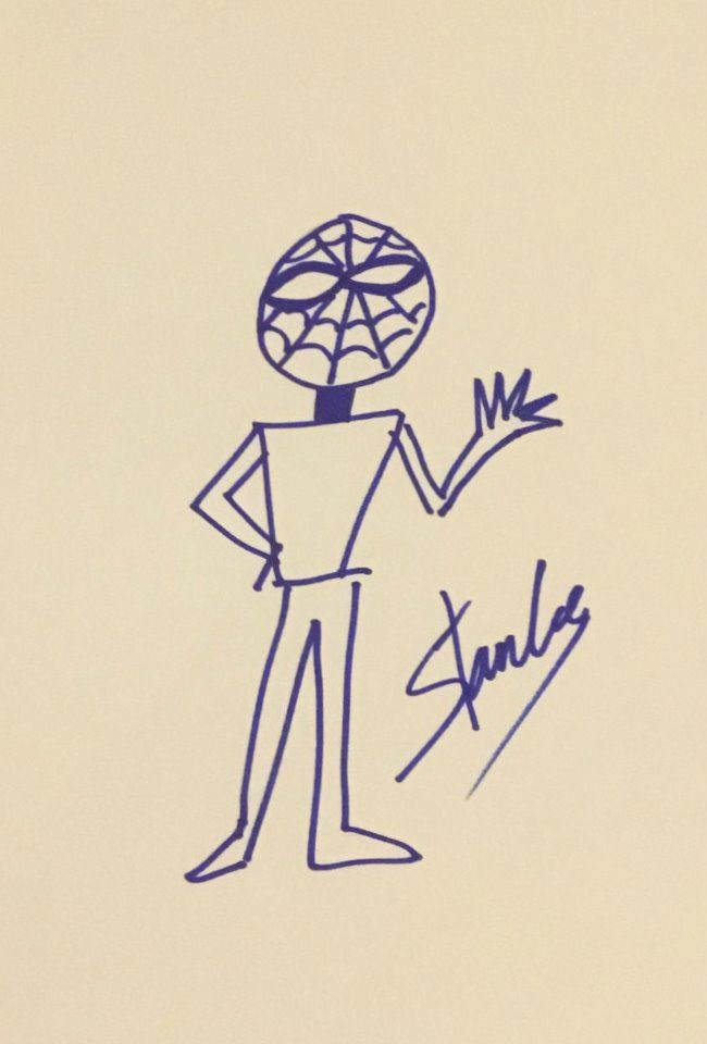 A drawing of his most famous charactor Spiderman, drawn and signed by Stan Lee. Supplied with coa.
