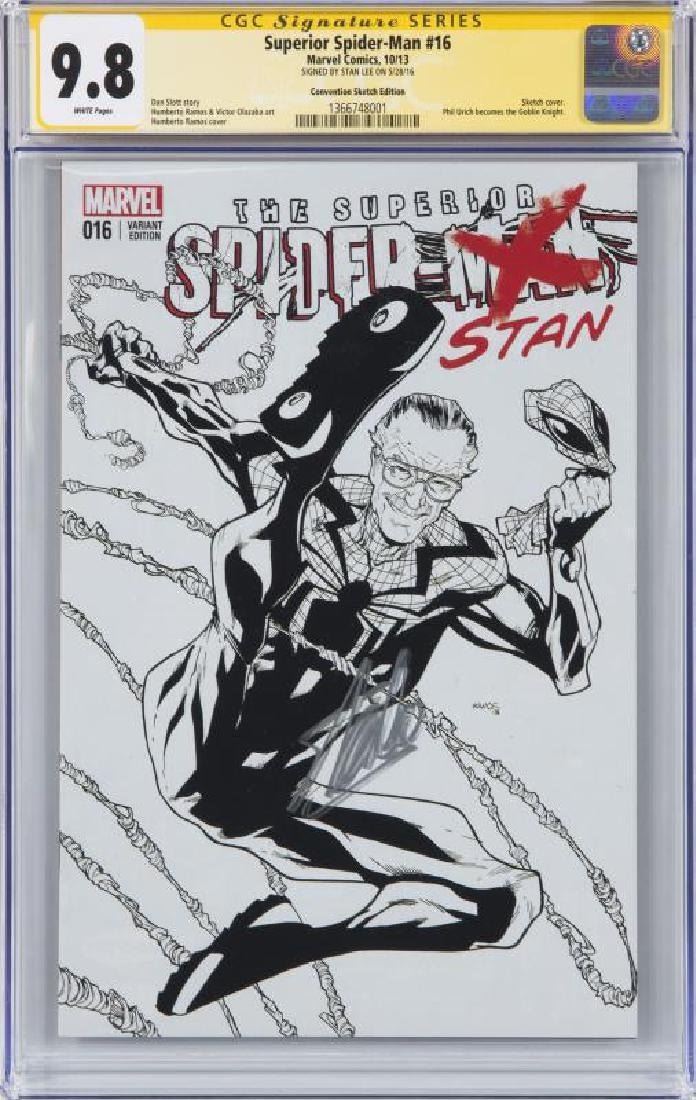 A copy of Superior Spider-STAN #16 (Marvel Comics Group, October 2013) signed in silver marker on the bottom cover by Stan Lee. CGC Signature Series Grade of 9.8.