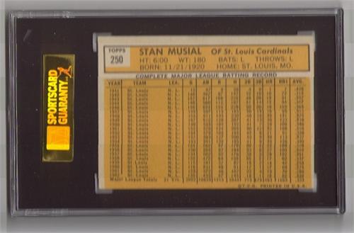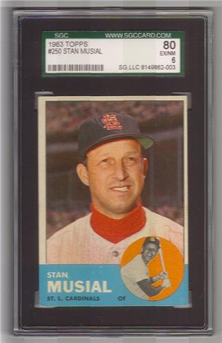 STAN MUSIAL 1963 TOPPS BASEBALL CARD. #250. Graded by SGC. 80. EX/NM 6. 8149862-003.