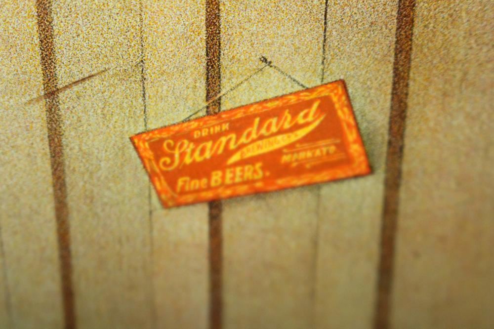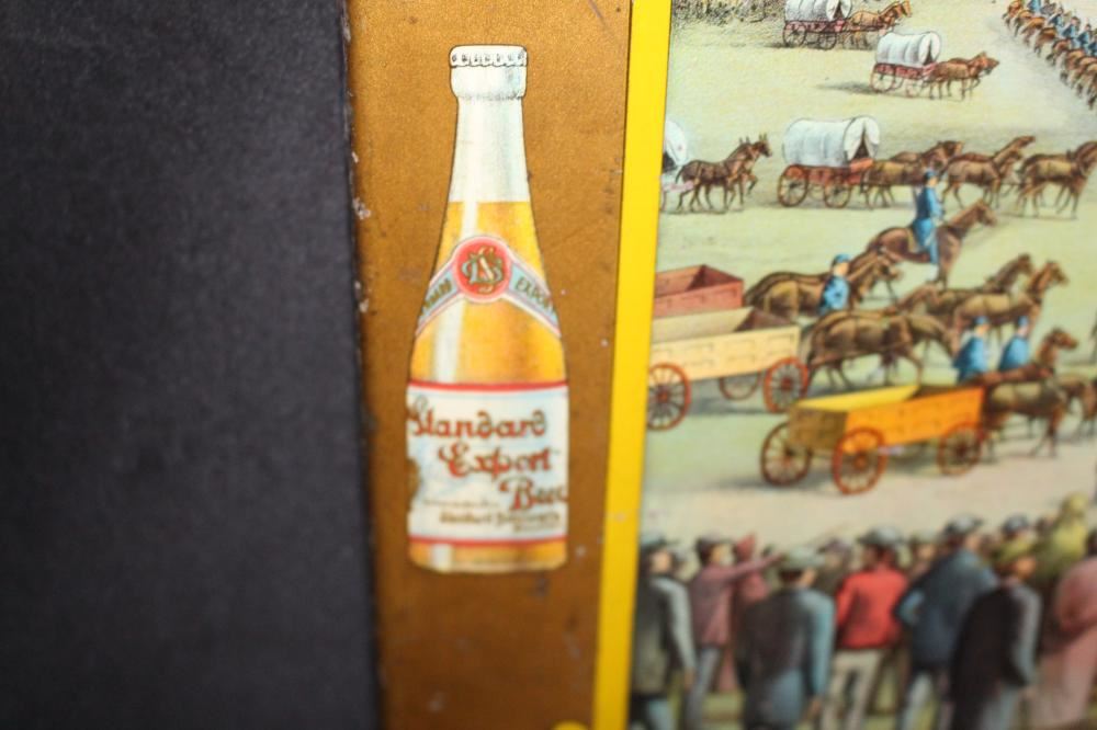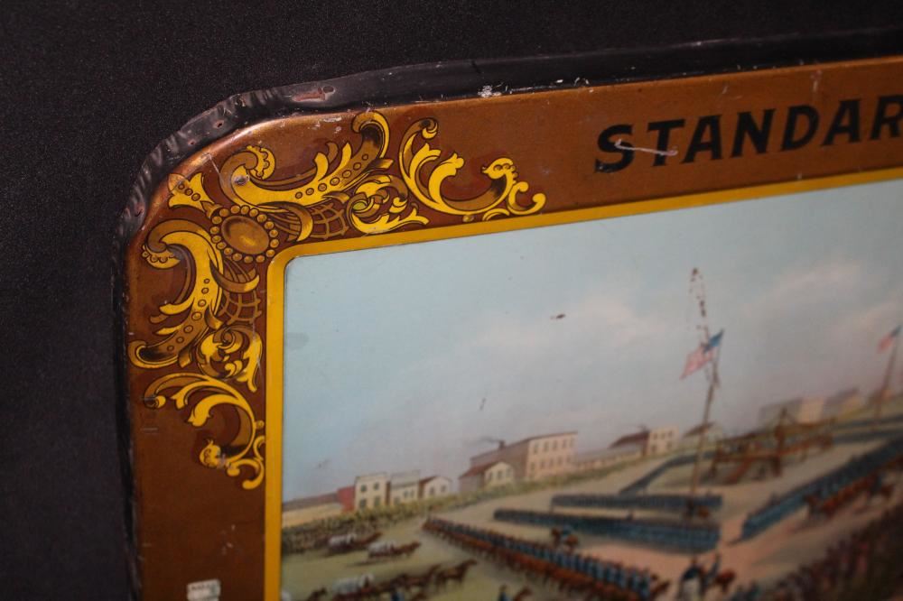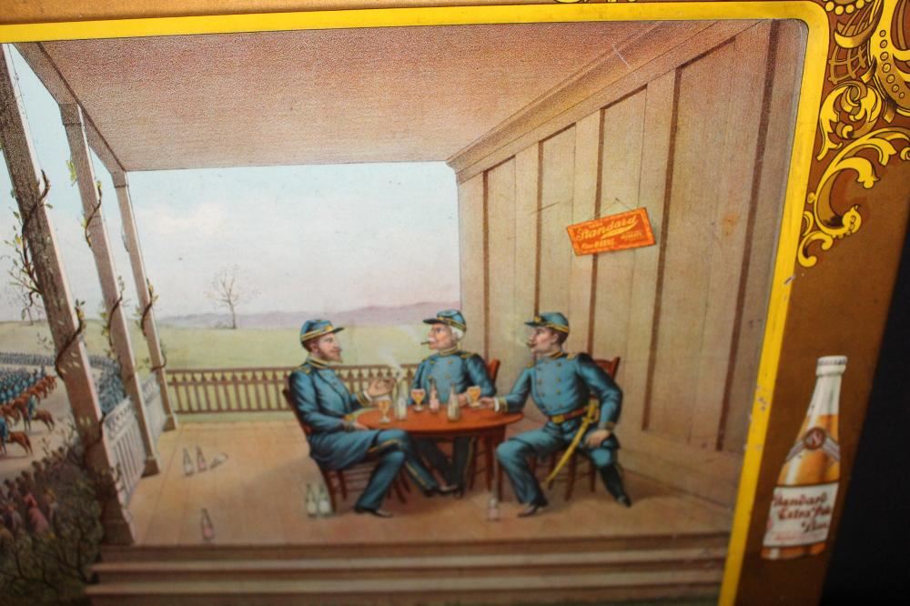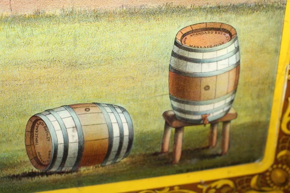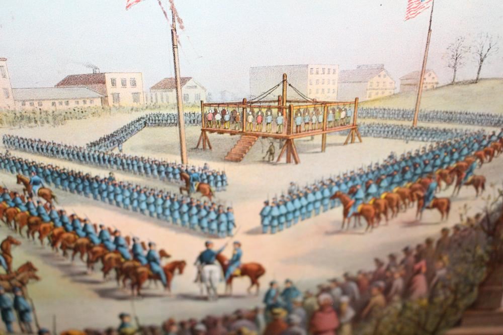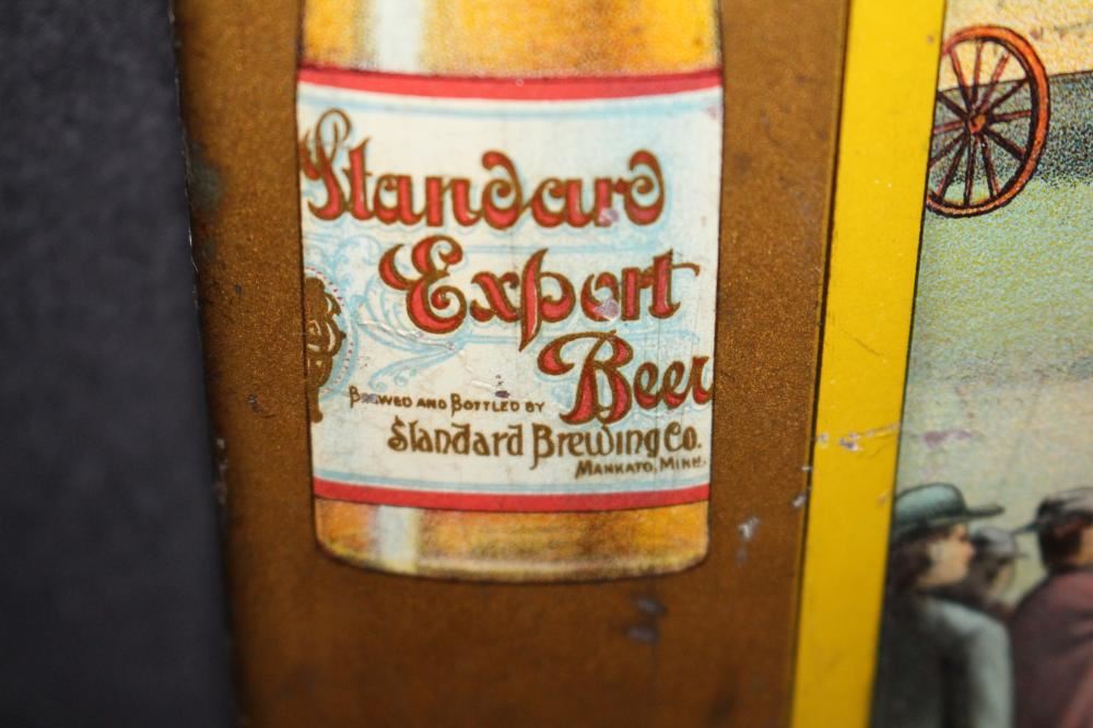 SST, 26X18. IMAGE ON THE SIGN IS OF THE MASS EXECUTION OF 38 SIOUX INDIANS IN MANKATO MINNESOTA. HAS SOME LIGHT WEAR. OVERALL VERY NICE. VERY RARE SIGN. APPROXIMATE SHIPPING COST $50 TO $75. THIS ITEM IS GUARANTEED TO
