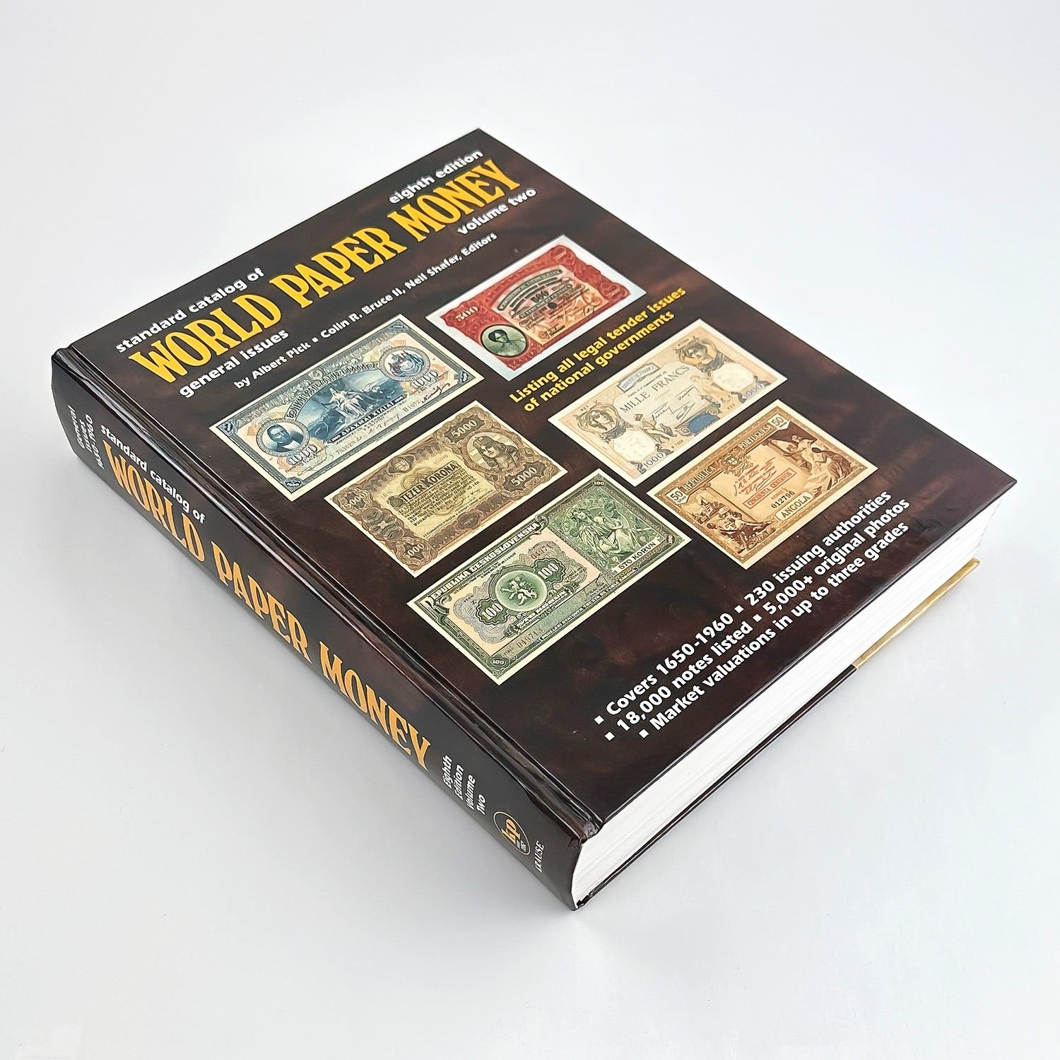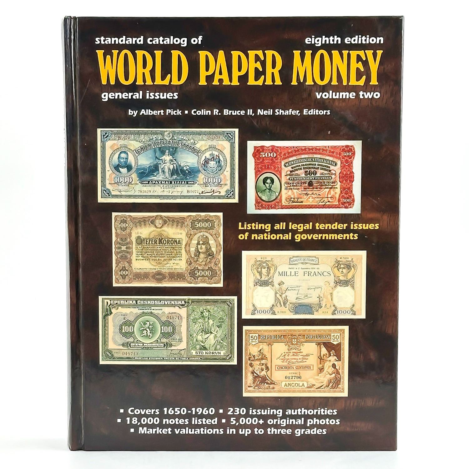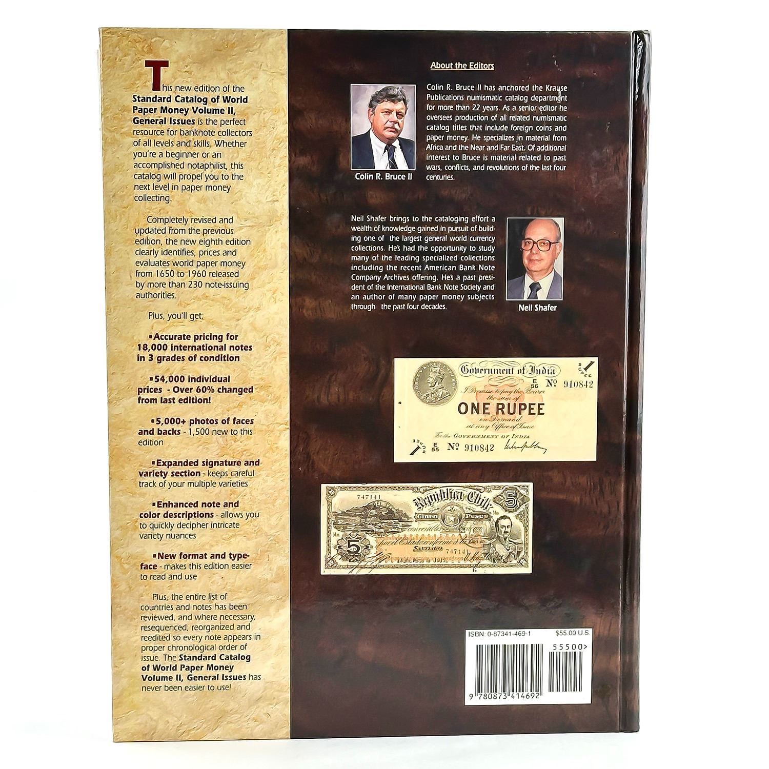 #8162 - STANDARD CATALOG OF WORLD PAPER MONEY - EIGHTH EDITION - GENERAL ISSUE - VOLUME TWO. GENERAL ISSUES 1650-1960. COPYRIGHT 1996 KRAUSE PUBLICATIONS INC. - HARDCOVER BOOK - 1072 PAGES. MEASURES: 11.25” X 8.75” AND 2” THICK