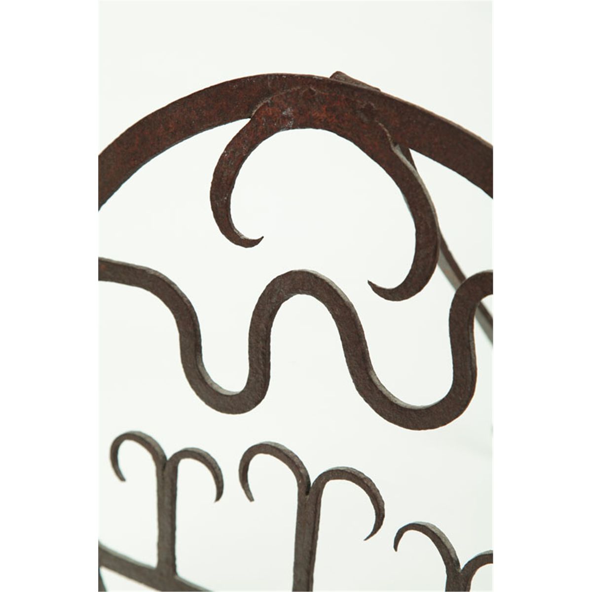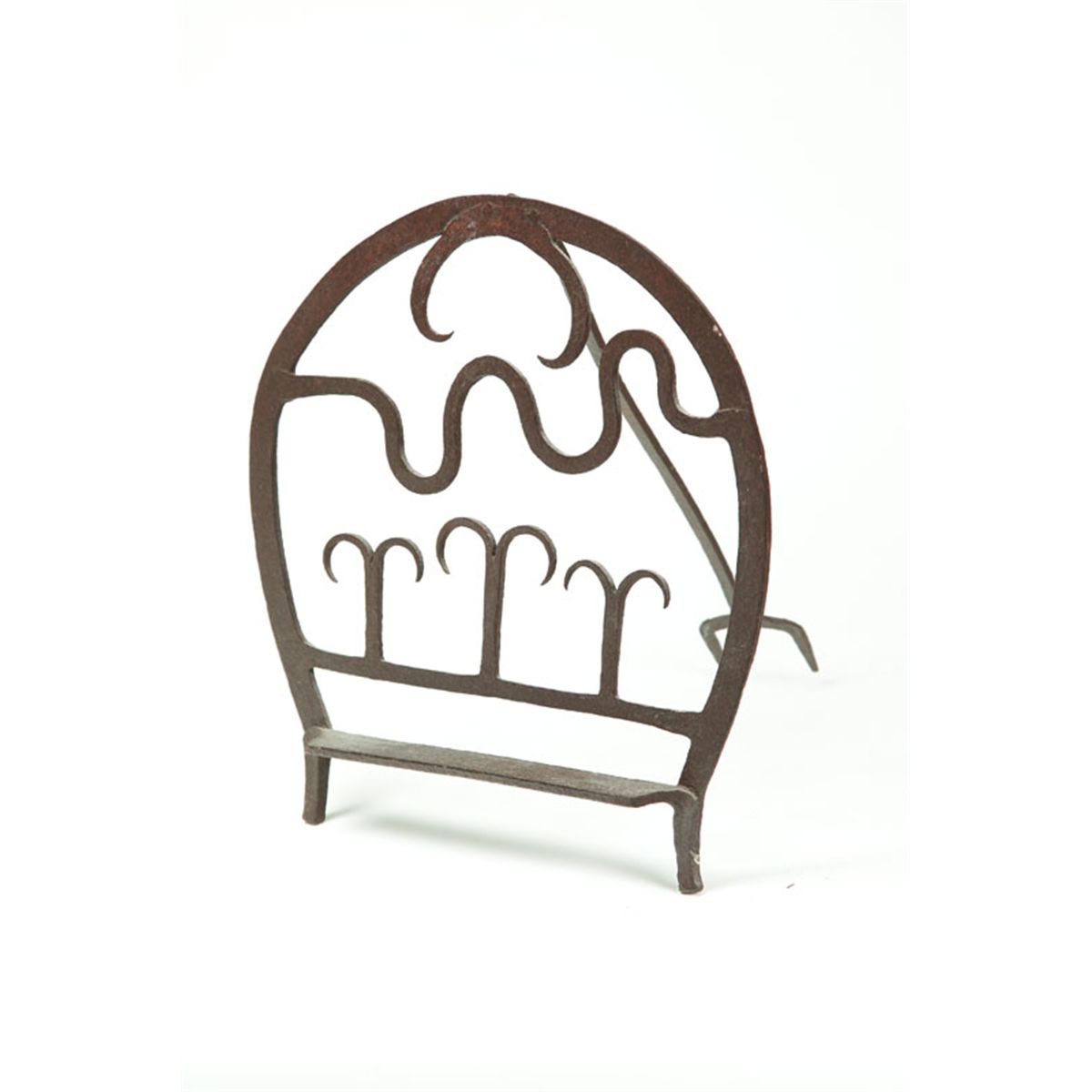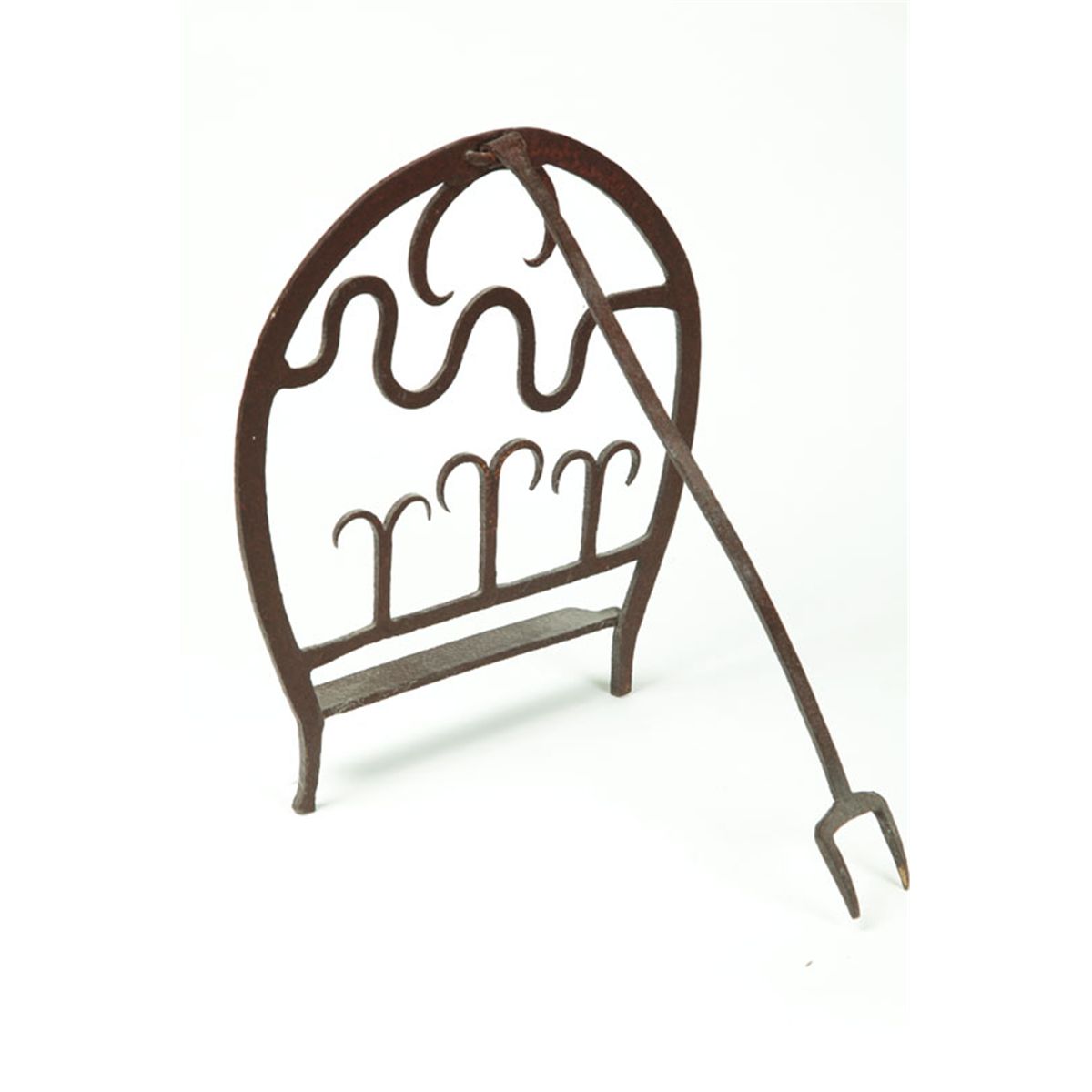 American, 19th century, wrought iron. 15"d., with kickstand. Ex Roy Waits (Ohio).