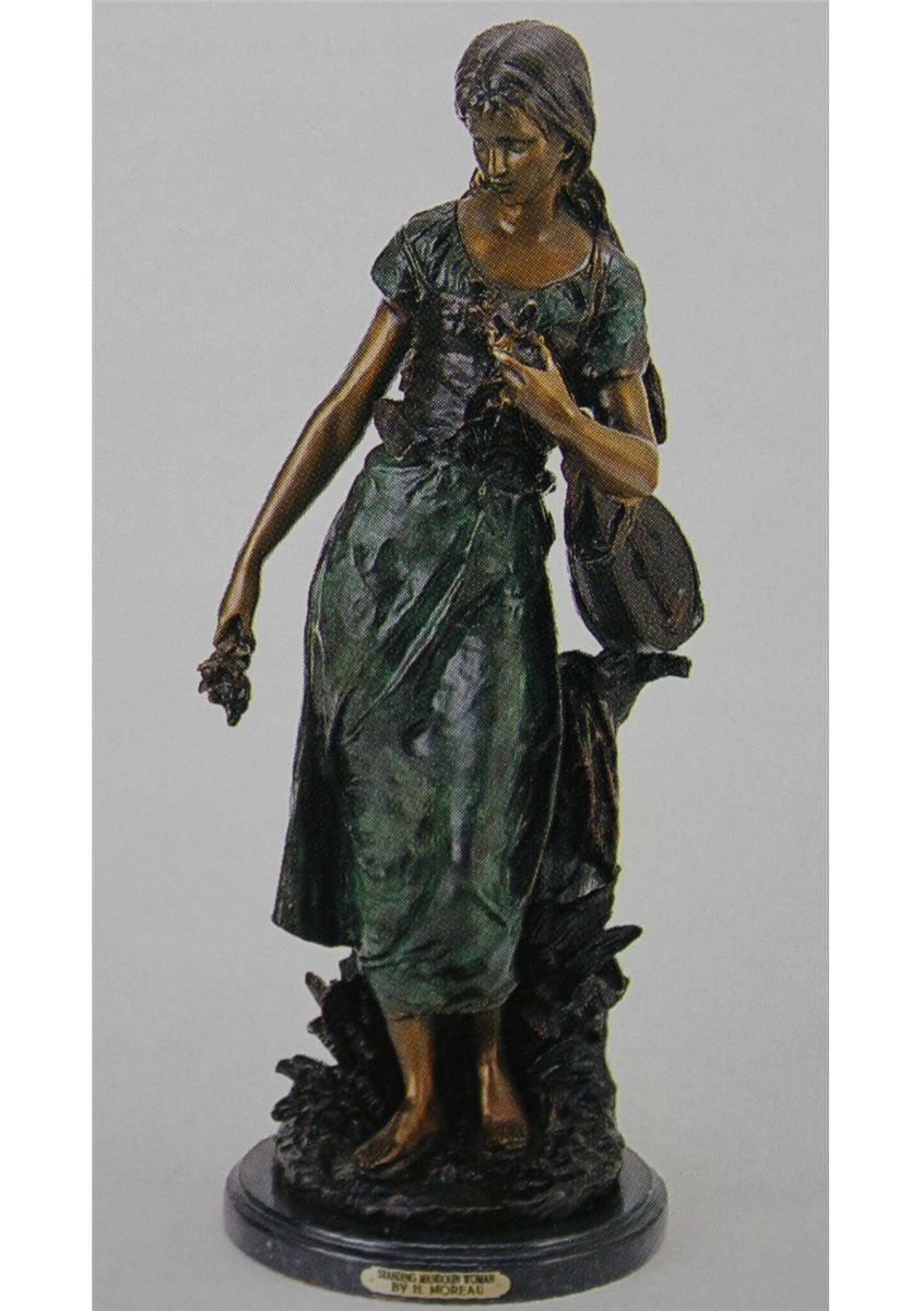 "STANDING MANDOLIN WOMAN" BRONZE SCULPTURE - AFTER A. MOREAU - MUSEUM BROWN FINISH - MOUNTED ON FINE MARBLE BASE - SIGNED - MINT CONDITION - 29.5"H X 11" W - LOST WAX CAST BRONZE