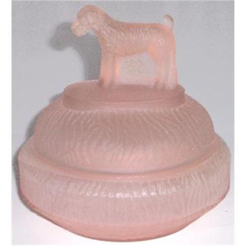 <tr><td>Title:STANDING TERRIER Pink Satin Glass Powder Jar</td></tr>