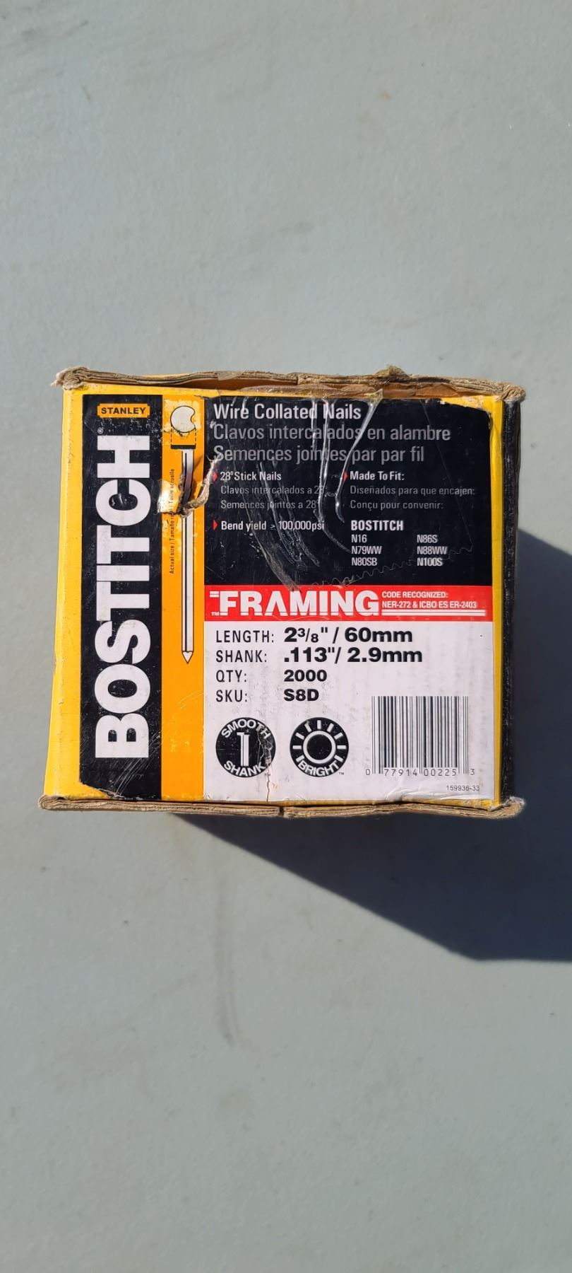 STANLEY/BOSTITCH WIRE COLLATED NAILS 2 2/3"
