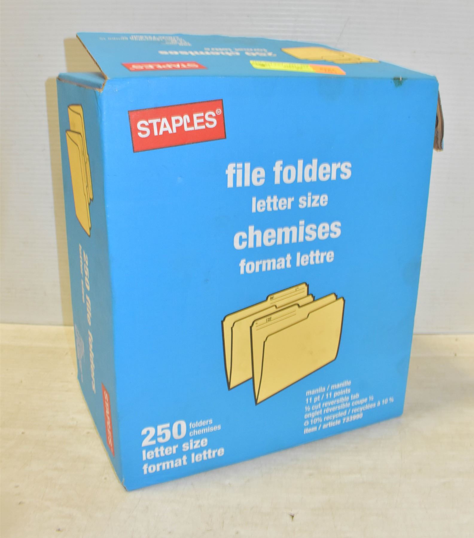STAPLES RECYCLED FILE FOLDERS - LETTER SIZE - 250