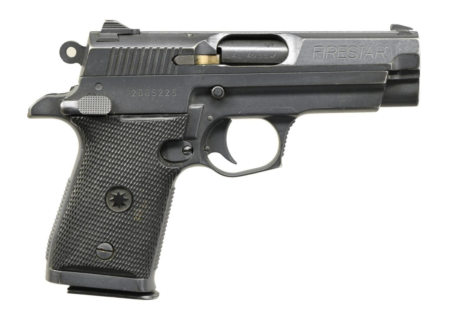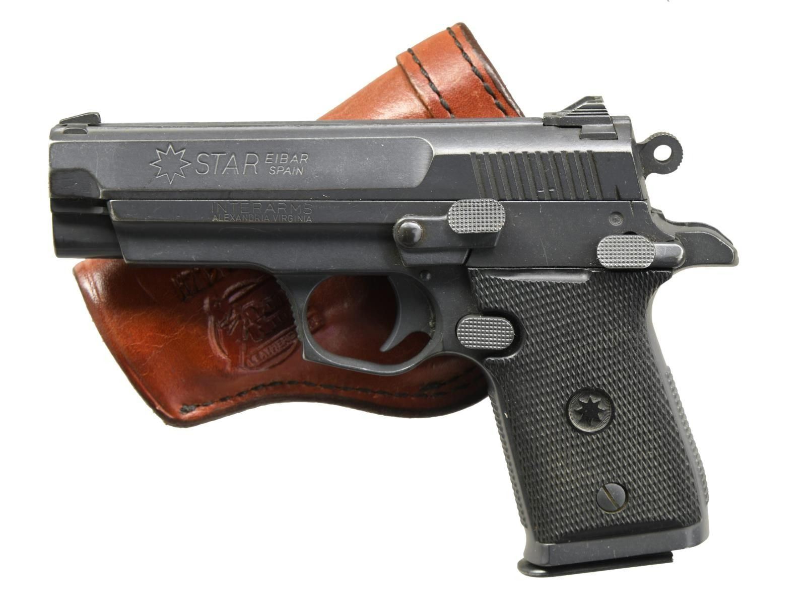 Cal. 40 S&W. S# 2005225. Bbl. 3 1/4". Blade front sight. Square notch rear sight. Gray enamel finish. Checkered black grips w/ Star logo. MAGS: 6-7 rd. UNATTACHED ACCESSORIES: Don Hume H715 No. 56 holster. CONDITION: grips show light handling wear. Metal retains 92% gray enamel finish w/ scattered edge & handling wear. Very good plus bright bore. (23-5301/MJC). $275-375.